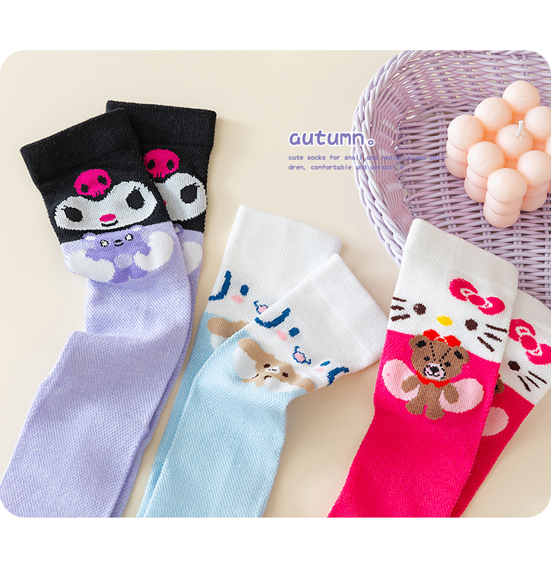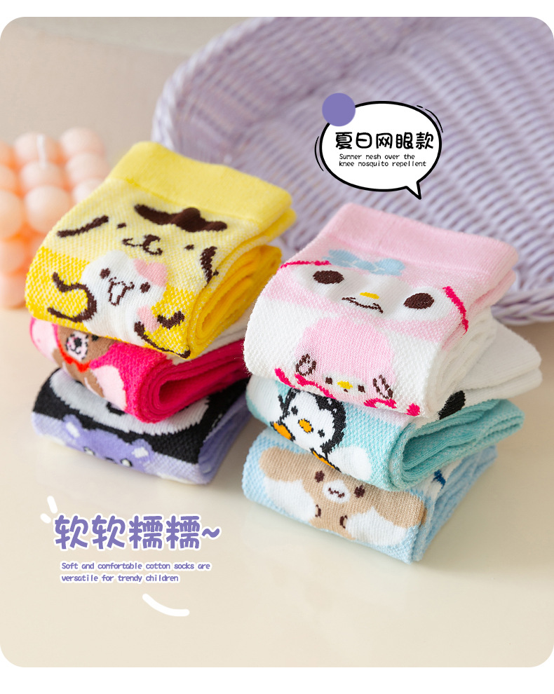 산리오 소녀 송아지 양말 여름 메쉬 통기성 달콤한 만화 여성의 무릎 위 스타킹 한국식 어린이 양말스토어 가기