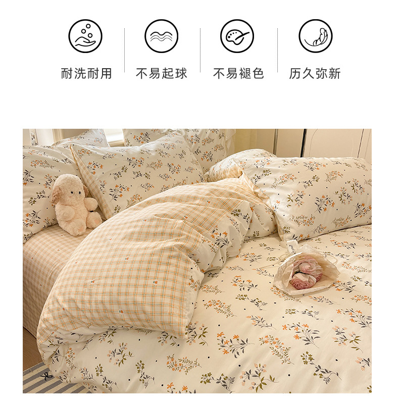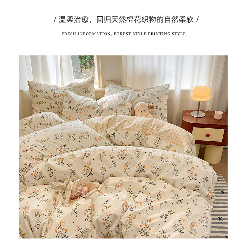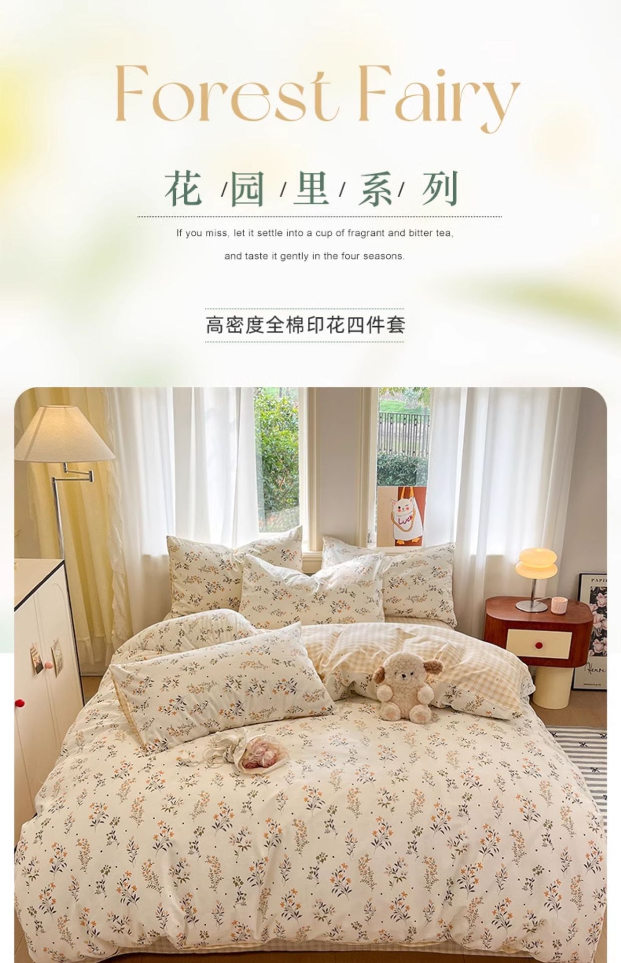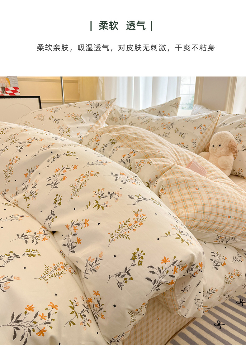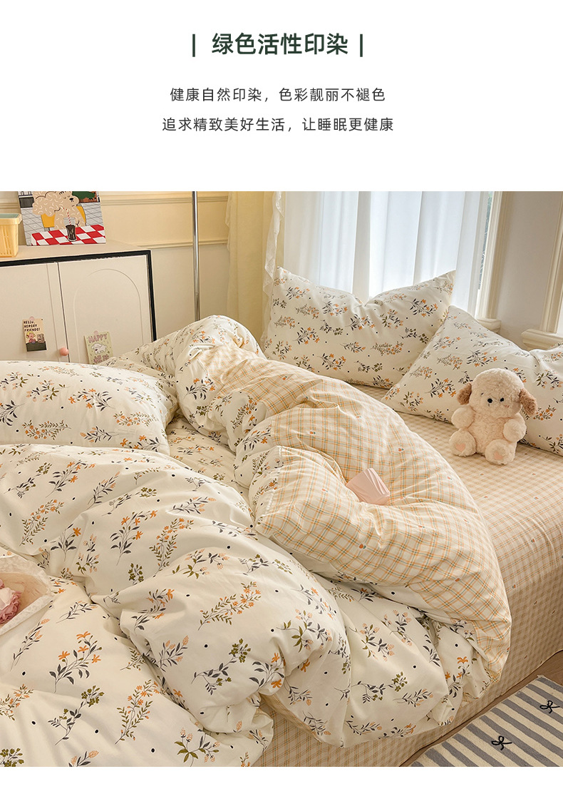 2025 새로운 면 침대 4 종 세트 100 면 침대 시트 퀼트 커버 침대 커버 침대 커버 학생 기숙사 3 종 침대스토어 가기