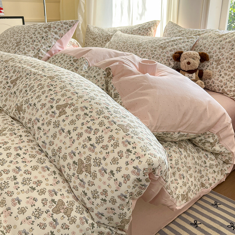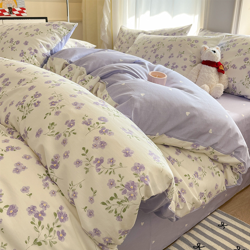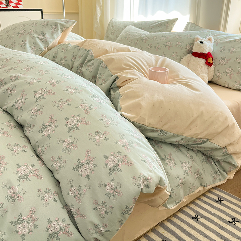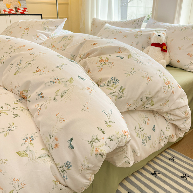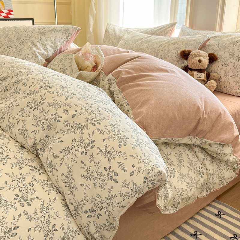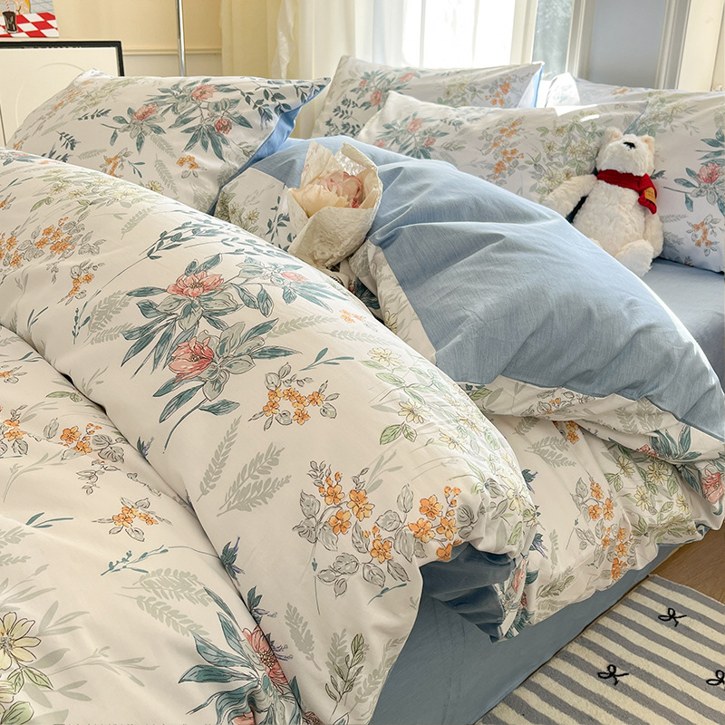 2025 새로운 면 침대 4 종 세트 100 면 침대 시트 퀼트 커버 침대 커버 침대 커버 학생 기숙사 3 종 침대스토어 가기