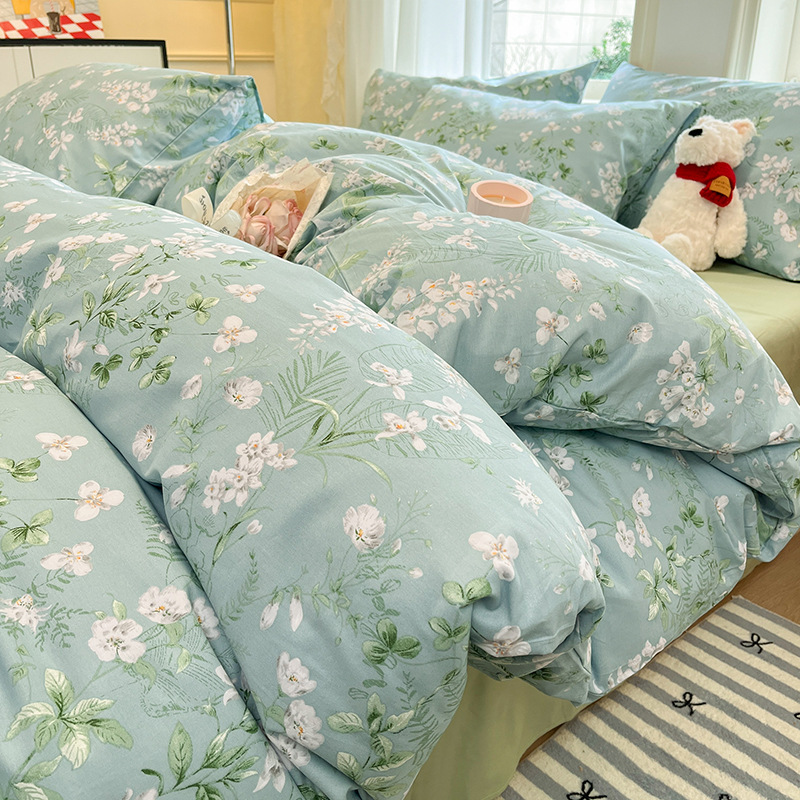 2025 새로운 면 침대 4 종 세트 100 면 침대 시트 퀼트 커버 침대 커버 침대 커버 학생 기숙사 3 종 침대
