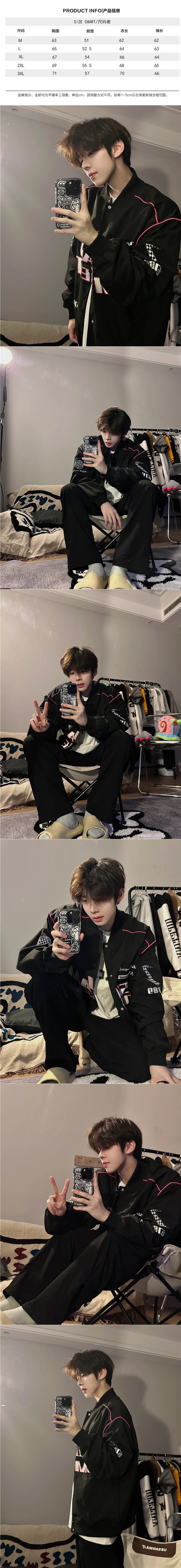 오토바이 코트 남자 봄과 가을 미국 스타일 하이 스트리트 소년 야구 세트 트렌디 브랜드 초가을 남자 세트 느낌 패권 재킷