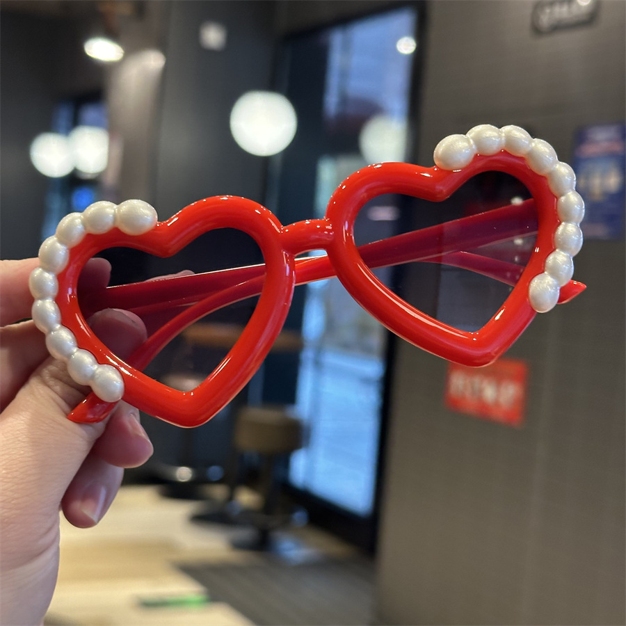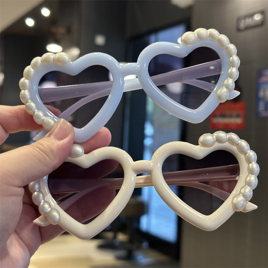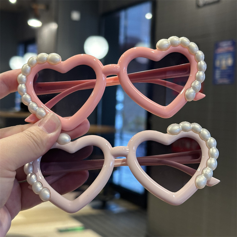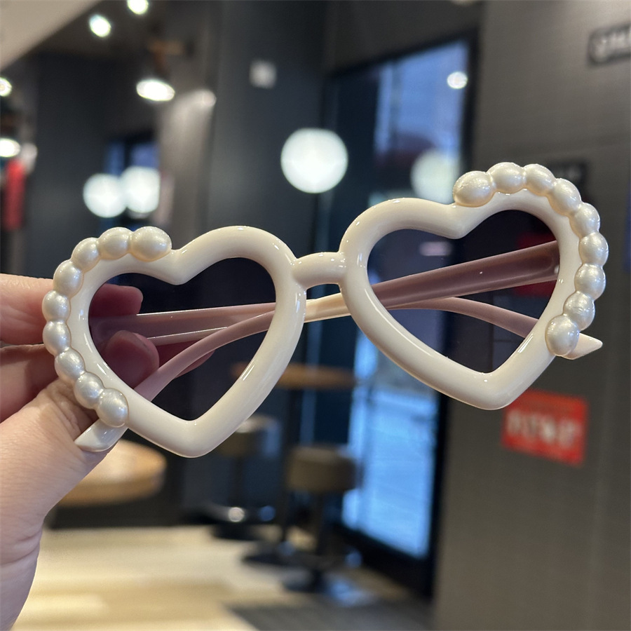 재미있는 사랑의 심장 귀여운 사진 선글라스 안경 새로운 어린이 선글라스 진주 모양 차양 어린이 안경