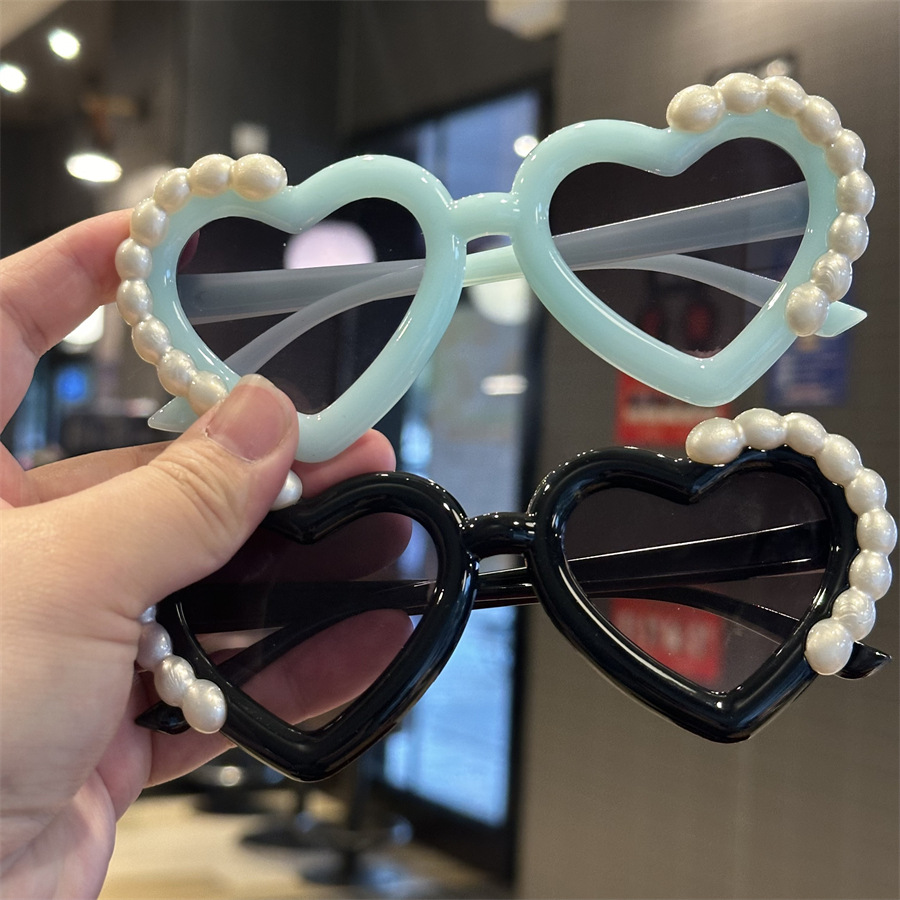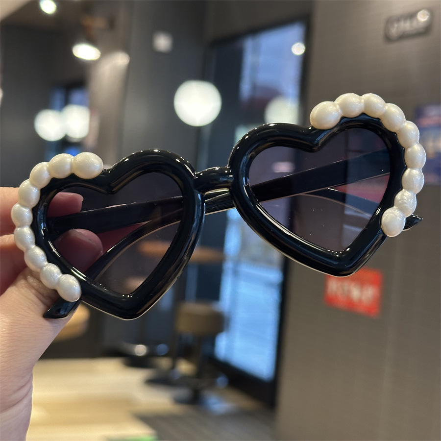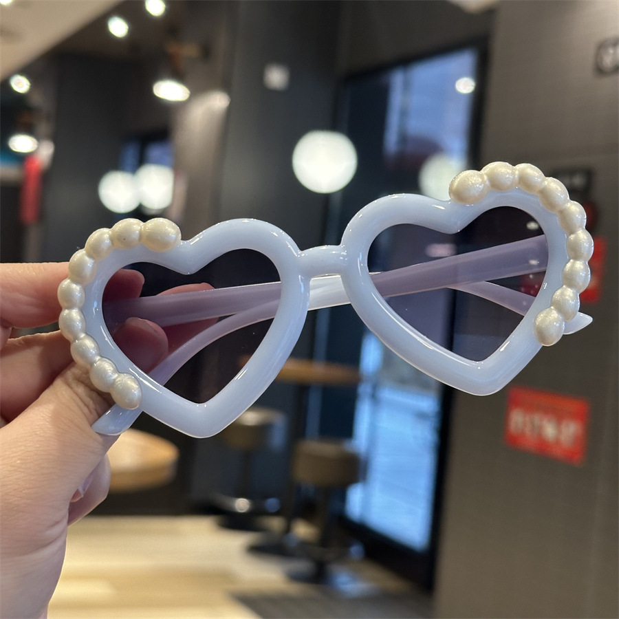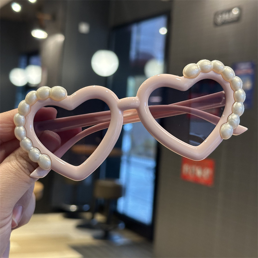 재미있는 사랑의 심장 귀여운 사진 선글라스 안경 새로운 어린이 선글라스 진주 모양 차양 어린이 안경