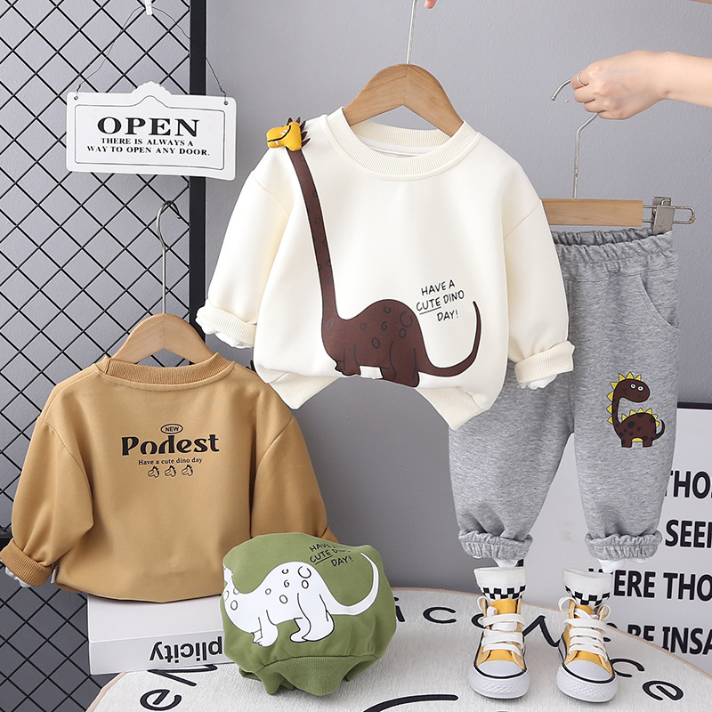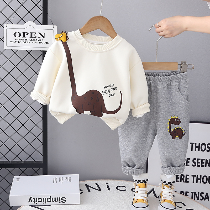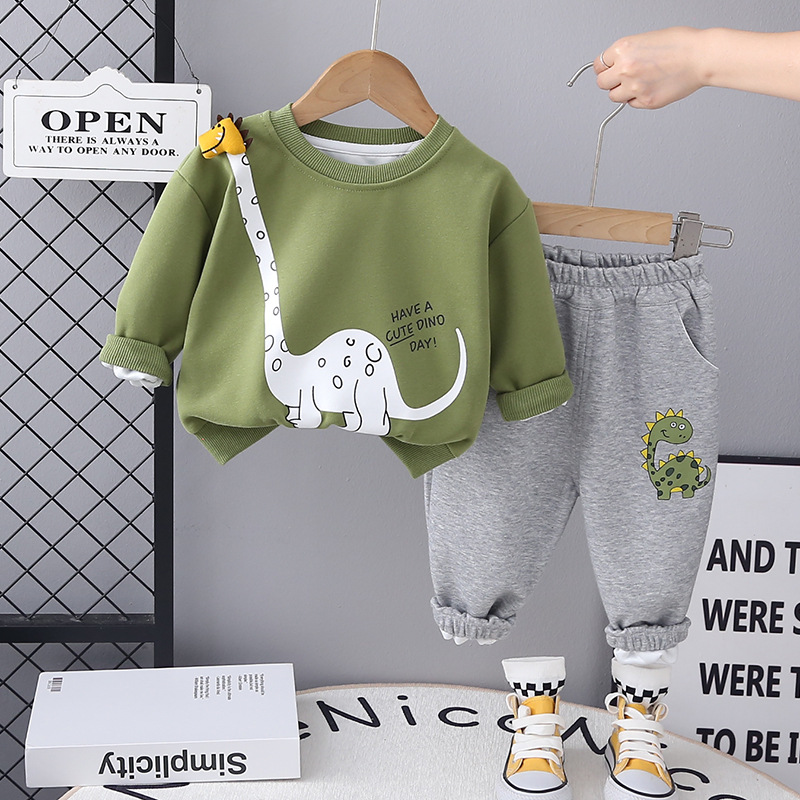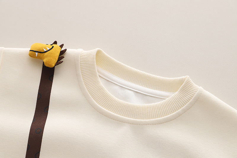 어린이 의류 봄 2025 새로운 긴 소매 소년 기린 단색 투피스 봄 의류 어린이 세트 세대 헤어