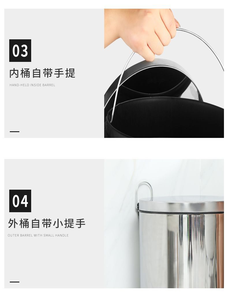• 3L 스테인레스 스틸 스텝형 쓰레기통