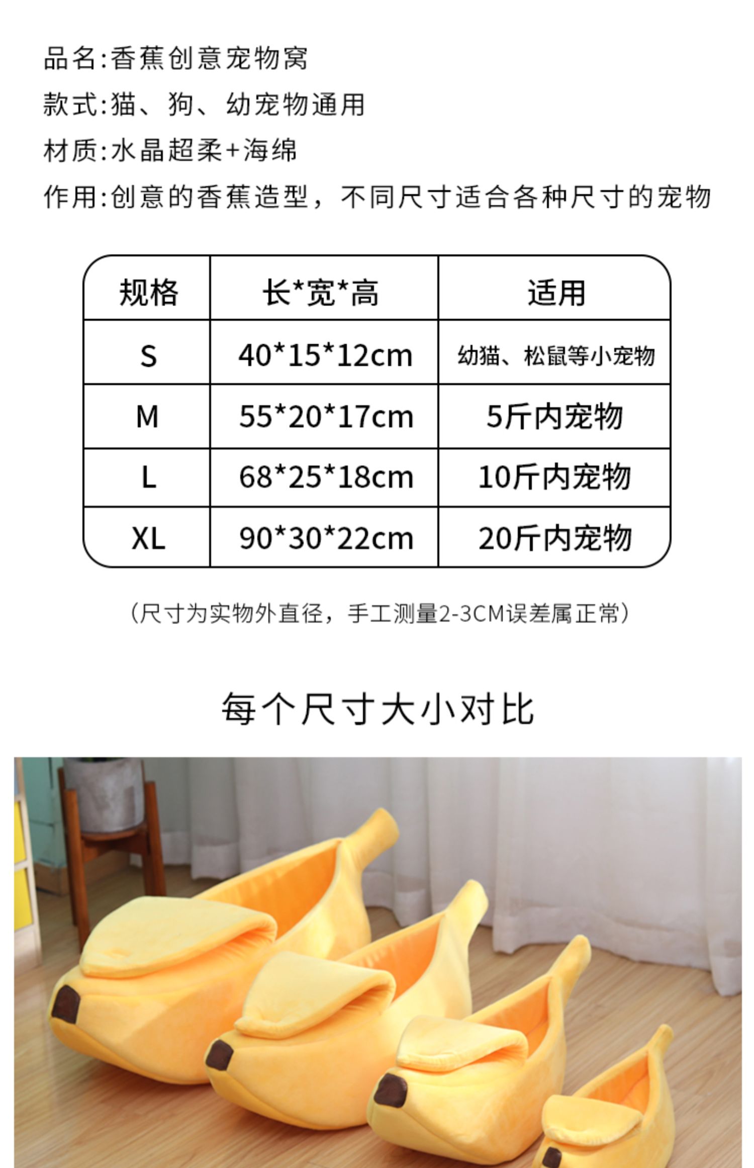 귀여운 바나나 보트 사육장 사계절 유니버설 고양이 둥지 겨울 따뜻한 작은 개 잠자는 가방 애완 동물 고양이 둥지 겨울