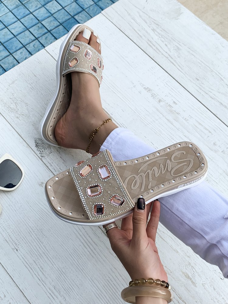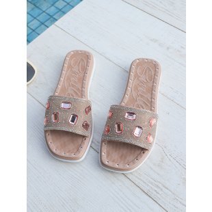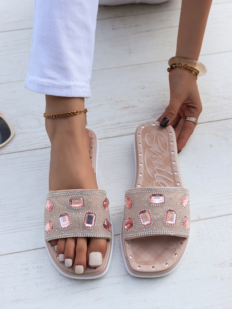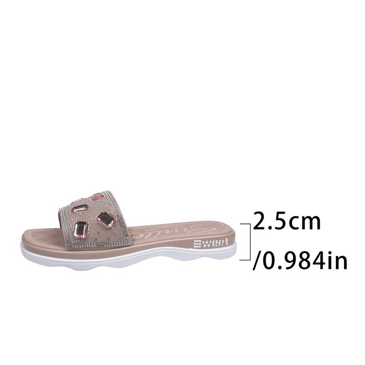 슬리퍼 여성의 여름 외부 착용 라인스톤 슬라이드 낮은 힐 플랫 홈 캐주얼 샌들