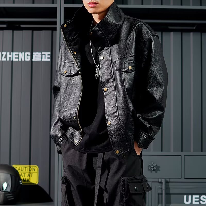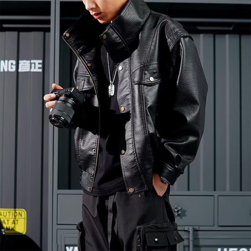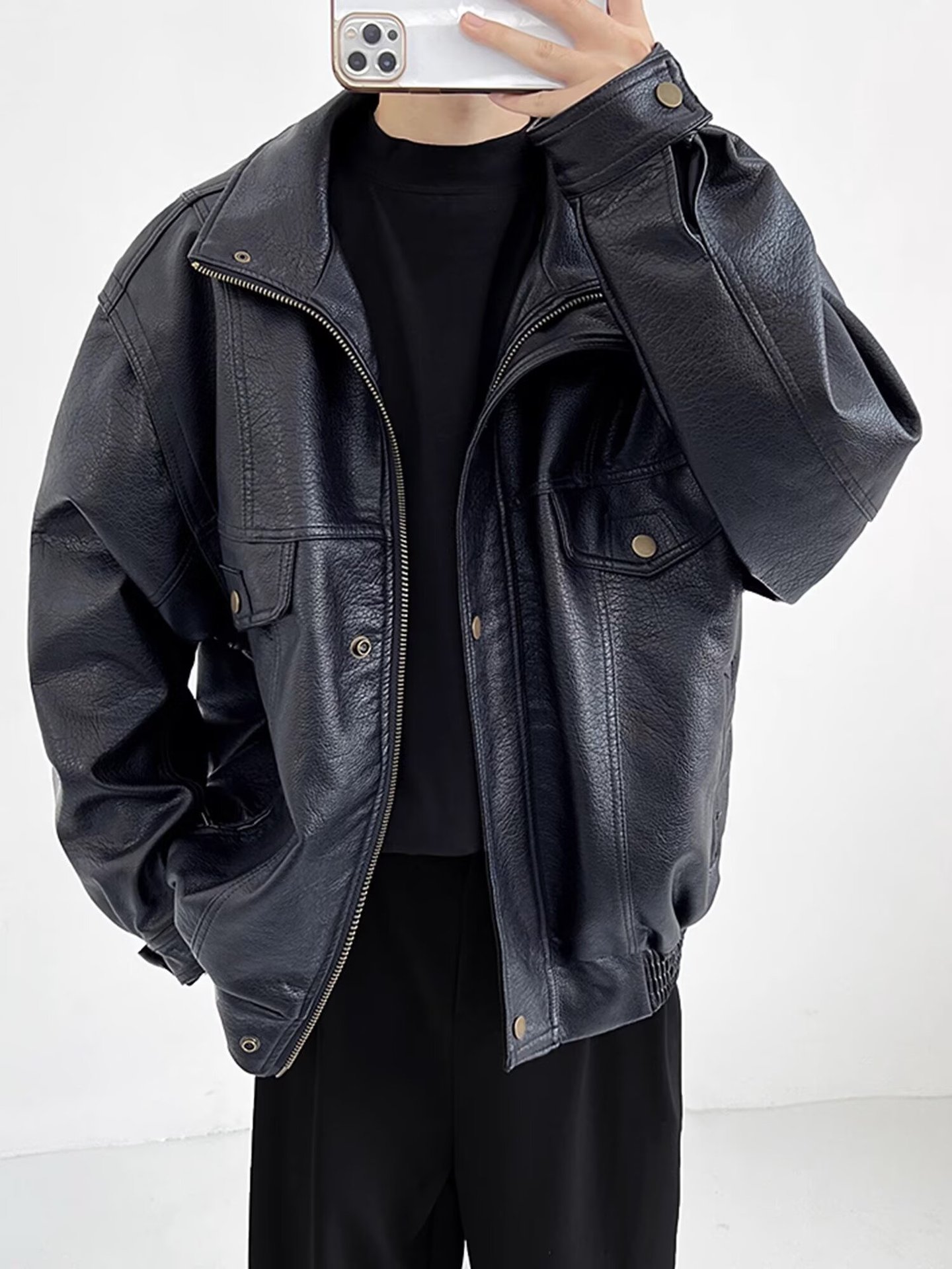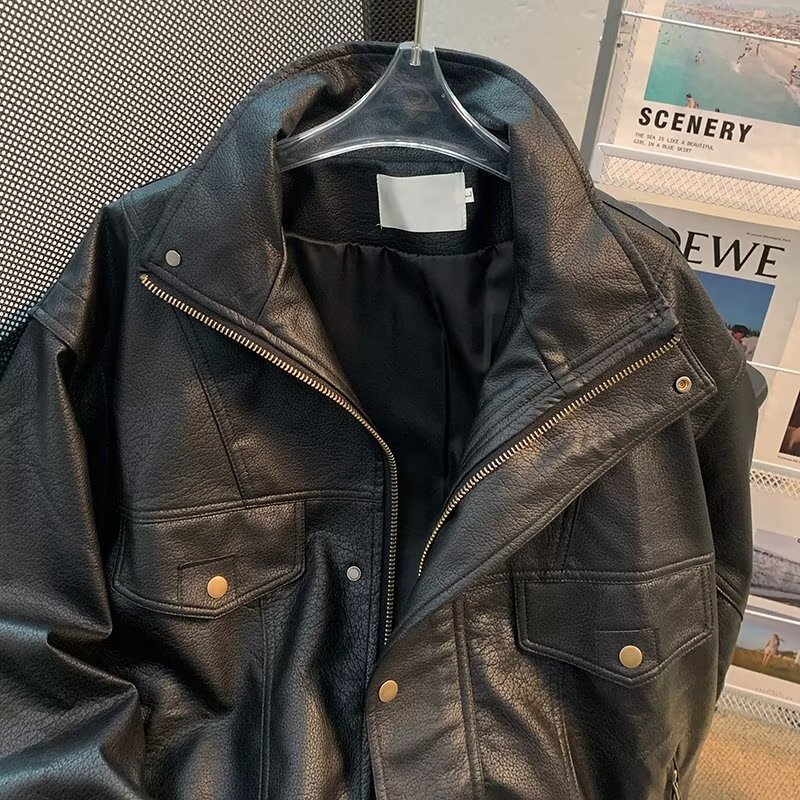 아메리칸 스타일 가죽 자켓 봄과 가을 레트로 PU 오토바이 가죽 자켓 남성 짧은 스타일 비행가 유행 재킷 가죽 자켓