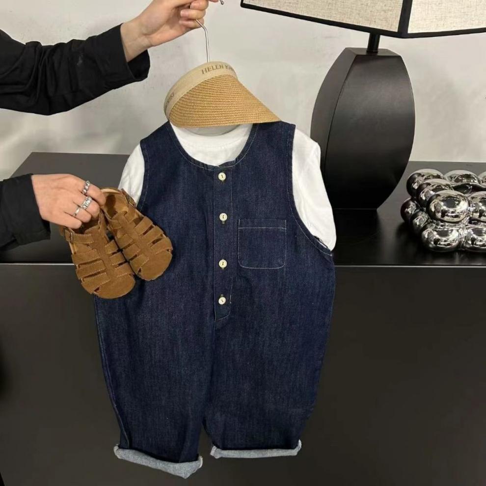 남학생 봄 · 가을 스트랩 바지 2025 새 한국 어린이 서양식 트렌디 아동복 소년 스트랩 올매치 데님스토어 가기