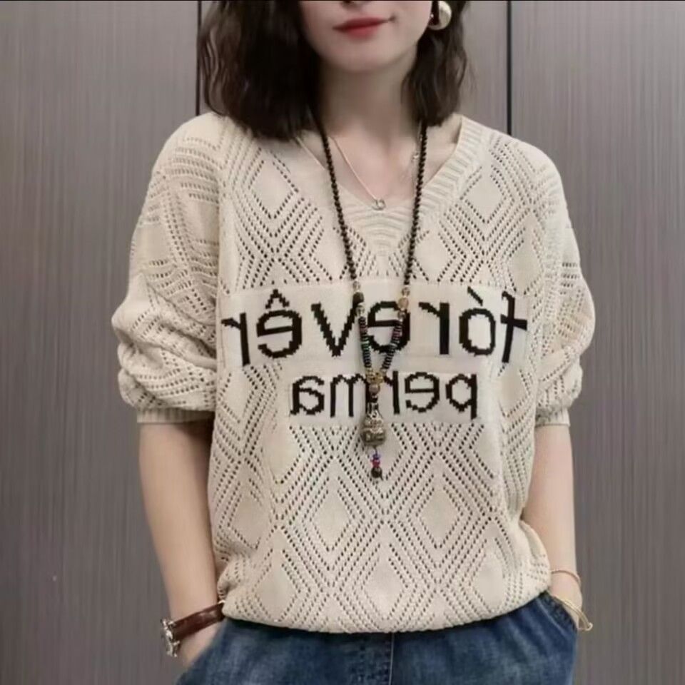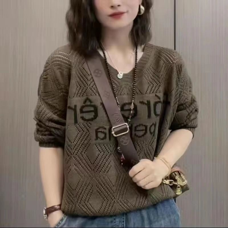 새로운 여성 캐주얼 패션 V 넥 할로우 니트 스웨터 탑 봄과 가을 얇은 젊은 올 매치 미트 커버