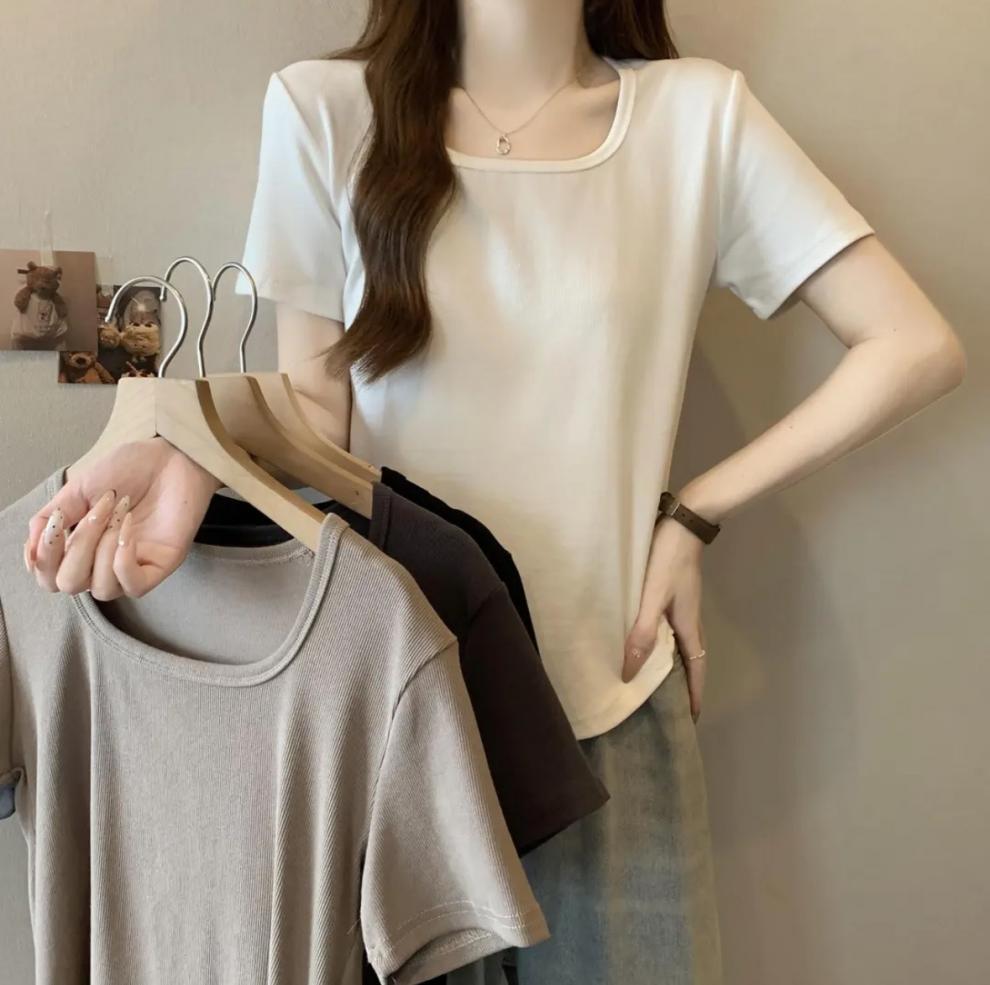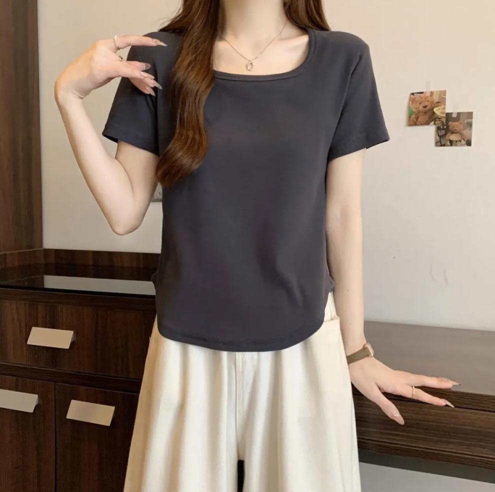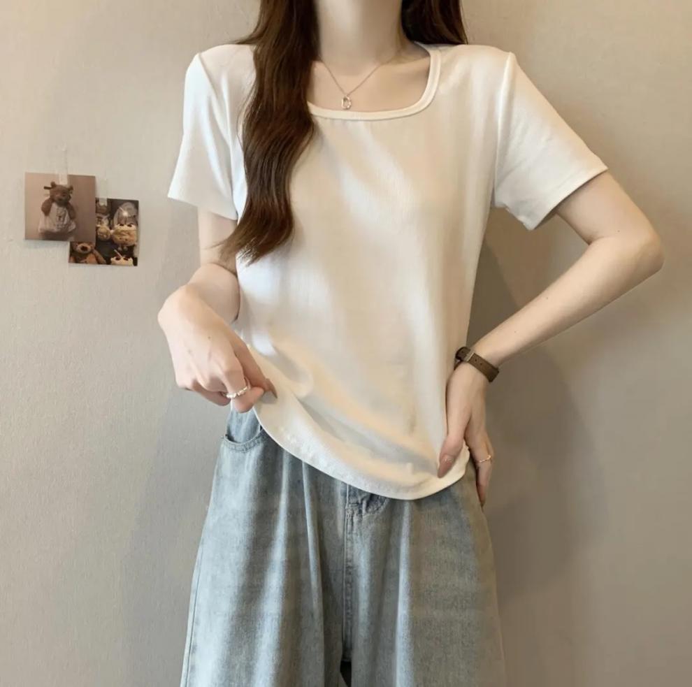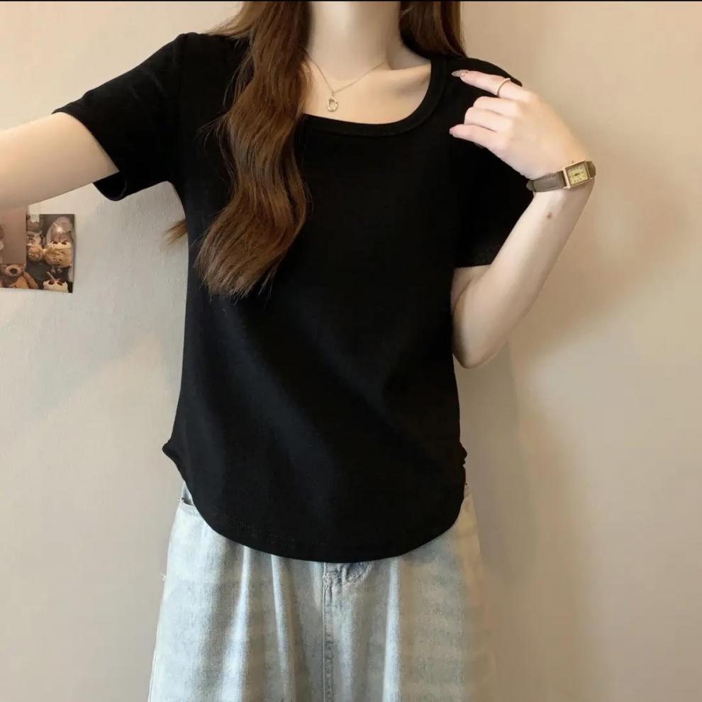 플러스 사이즈 여성 육류를 가리는 슬리밍 숄더 셔츠 여성의 여름 새로운 올 매치 간단한 서양식 연령 감소 반소매 정상스토어 가기