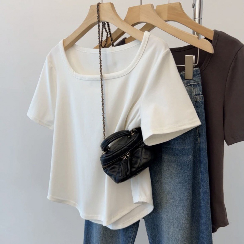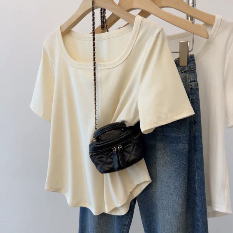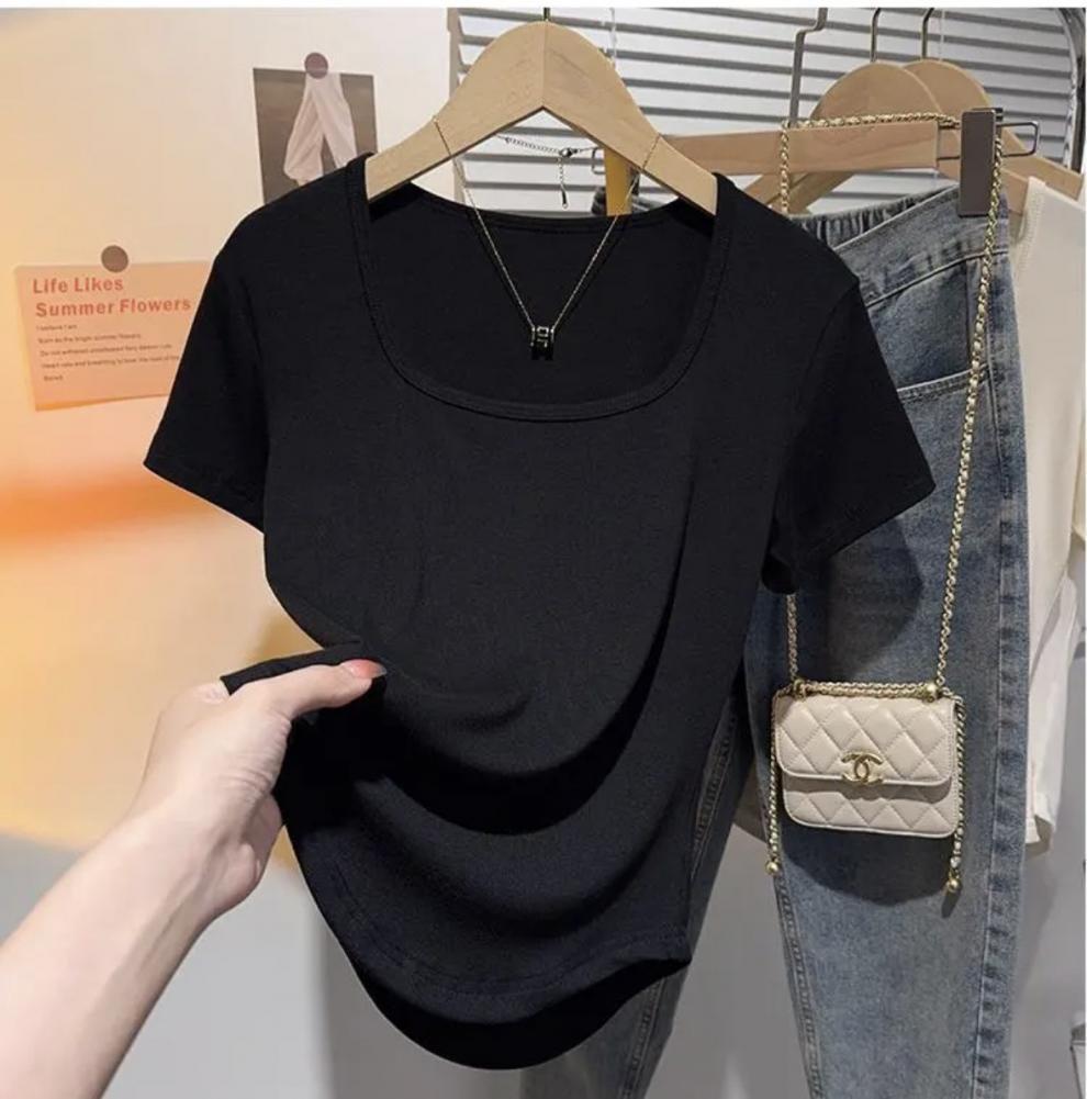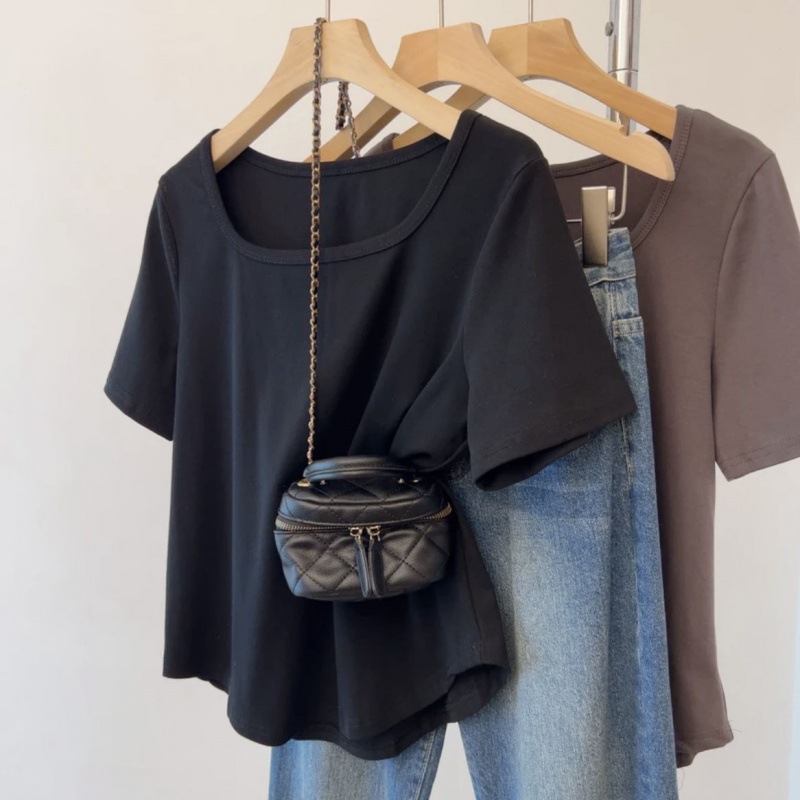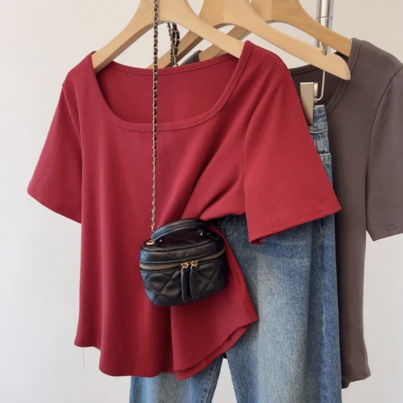 플러스 사이즈 여성 육류를 가리는 슬리밍 숄더 셔츠 여성의 여름 새로운 올 매치 간단한 서양식 연령 감소 반소매 정상스토어 가기