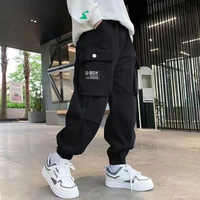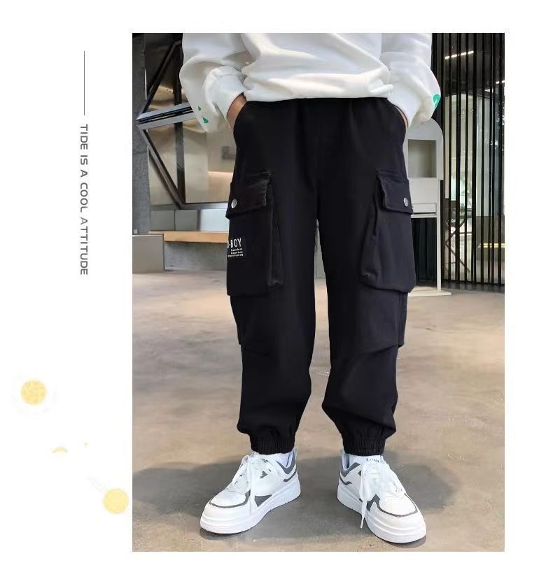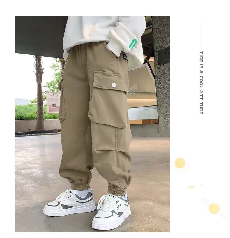 소년 쿠션 바지 봄과 가을 2025 새로운 어린이 바지 소년 느슨한 캐주얼 바지 큰 어린이 서양식 바지스토어 가기