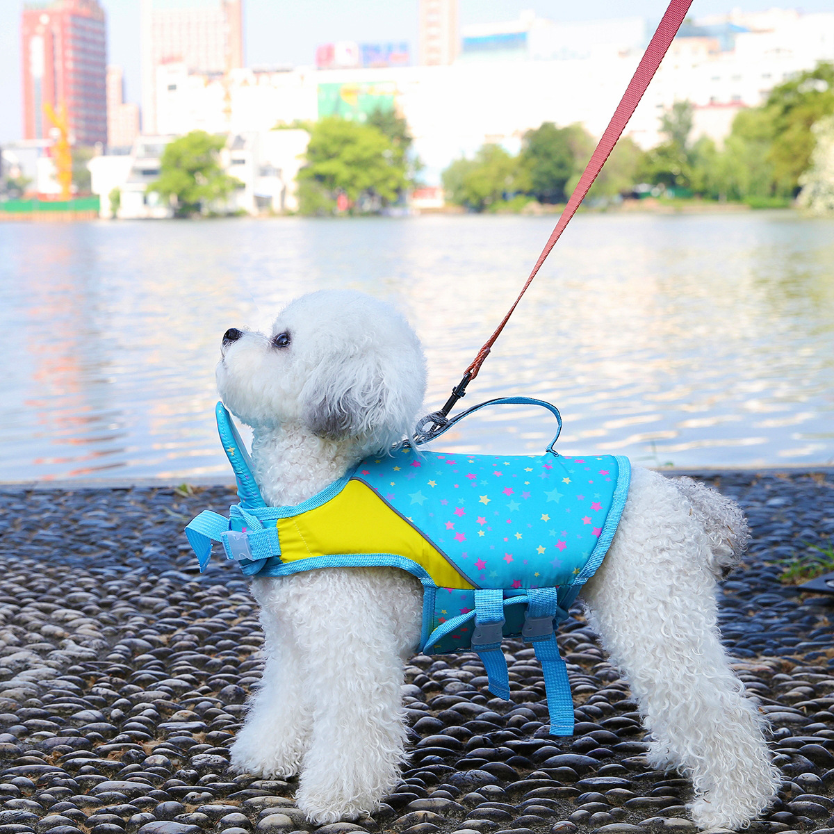 도매 여름 새로운 애완견 수영 세트 휴대용 견인 애완 동물 구명 조끼 대외 무역을위한 국경 독점스토어 가기