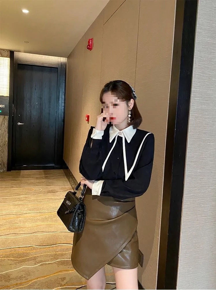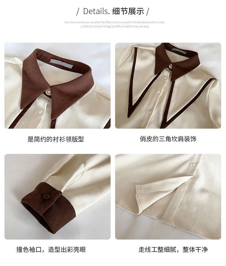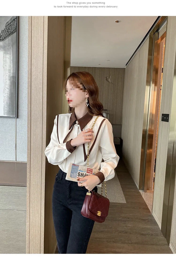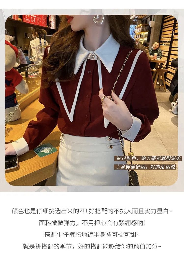 빈티지 얇은 셔츠 여자 올매치 붉은 봄과 가을 새로운 한국 스타일 느슨한 슬리밍 포인팅 칼라베이스 탑 셔츠스토어 가기