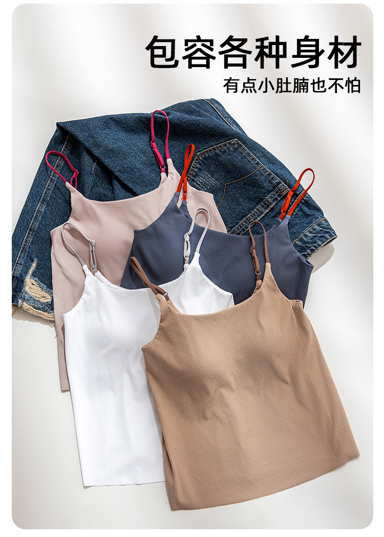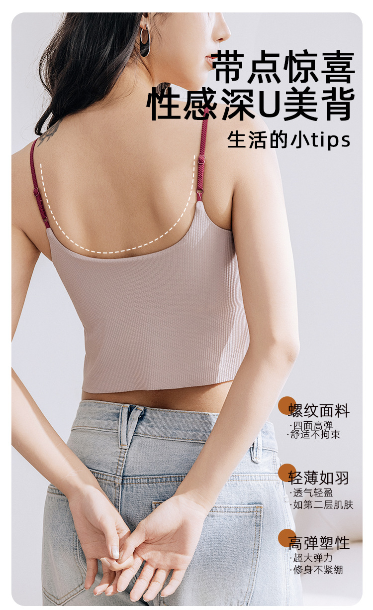 春夏新款撞色肩带时尚百搭吊带背心女修身显瘦舒适无痕美背吊带