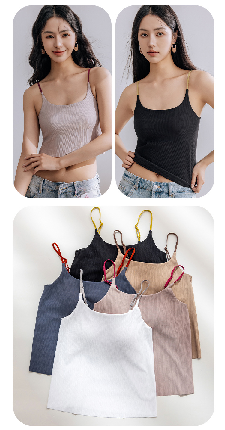 春夏新款撞色肩带时尚百搭吊带背心女修身显瘦舒适无痕美背吊带스토어 가기