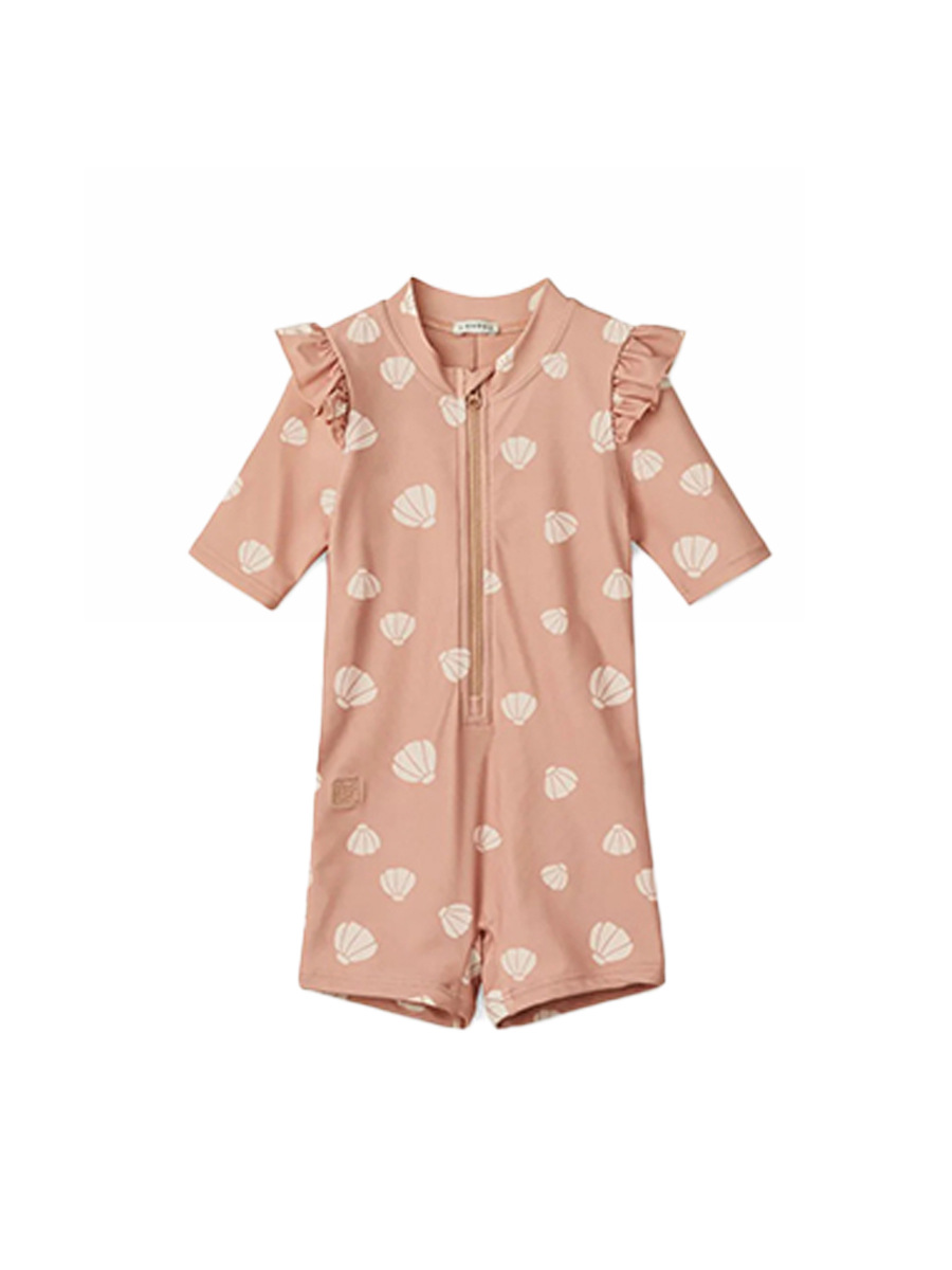 • 플라잉 슬리브 수영복 핑크 쉘 [수영복+수영모]