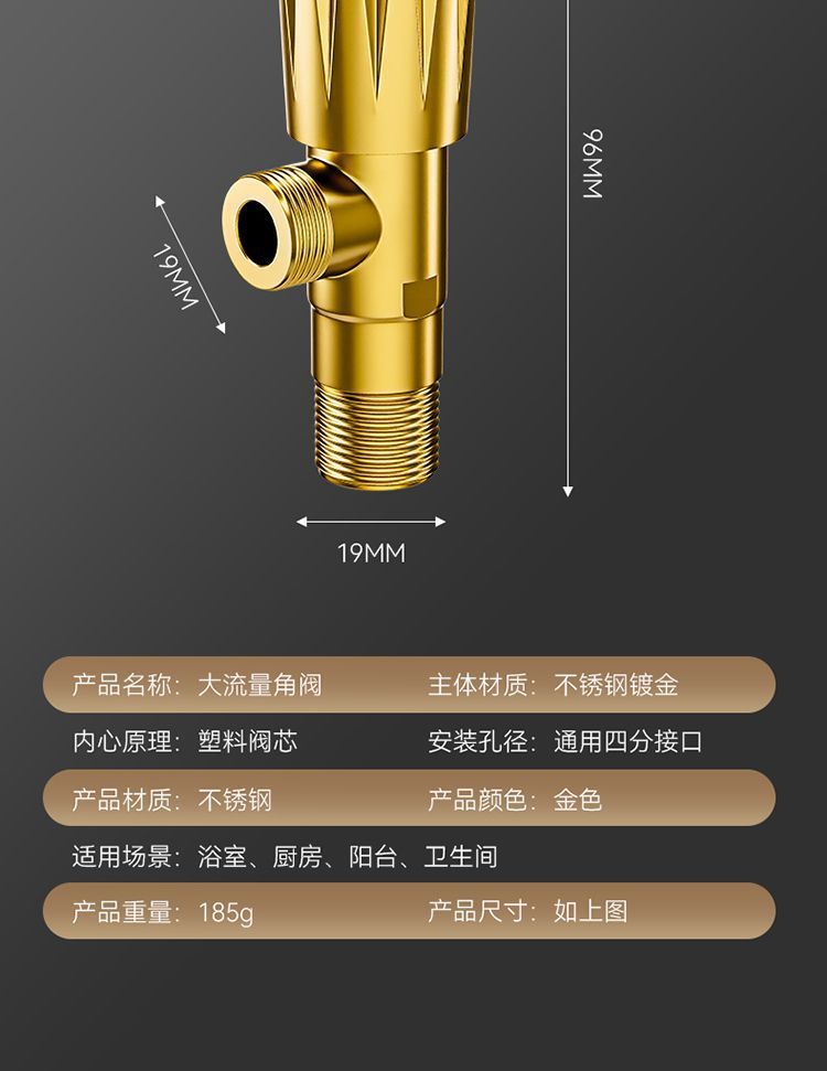 • Tuhao 금 두꺼운 스테인레스 스틸 구리 코어 앵글 밸브