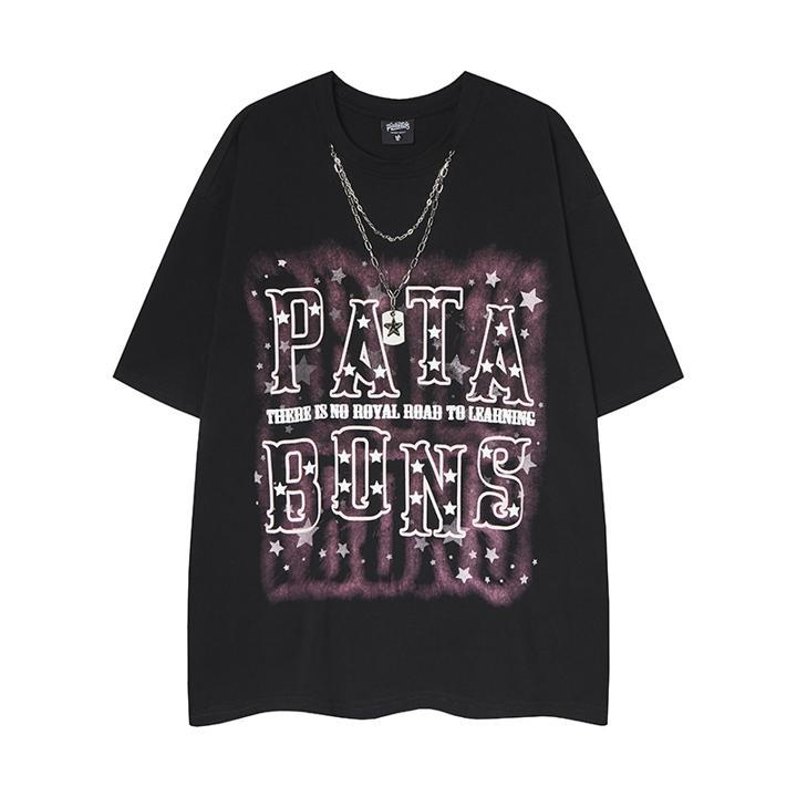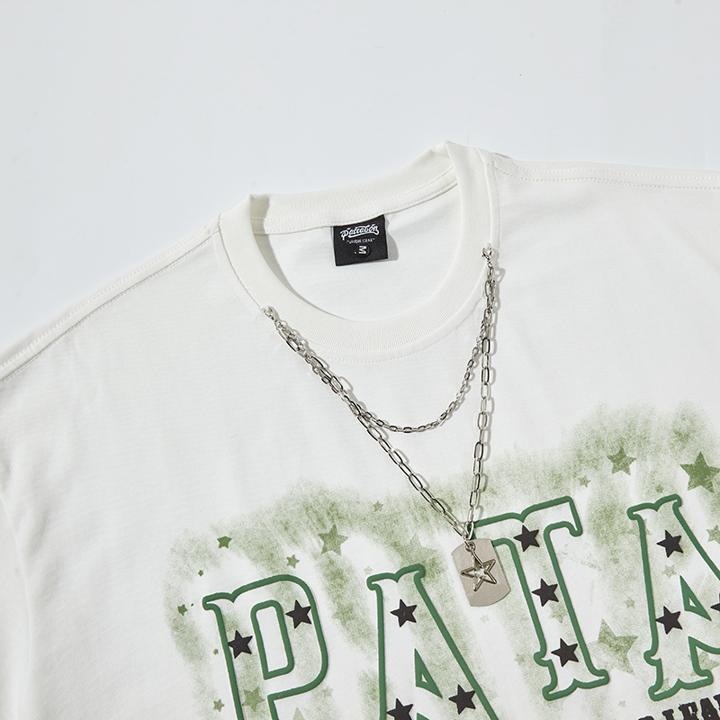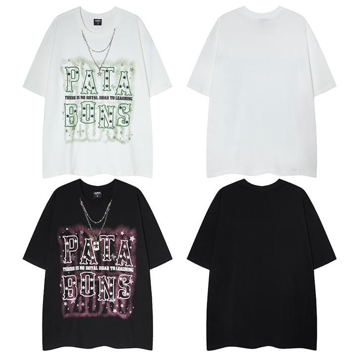 미국식 힙합 패션 브랜드 거품 편지 반팔 티셔츠 남성과 여성의 틈새 디자인 목걸이 커플 반소매 탑