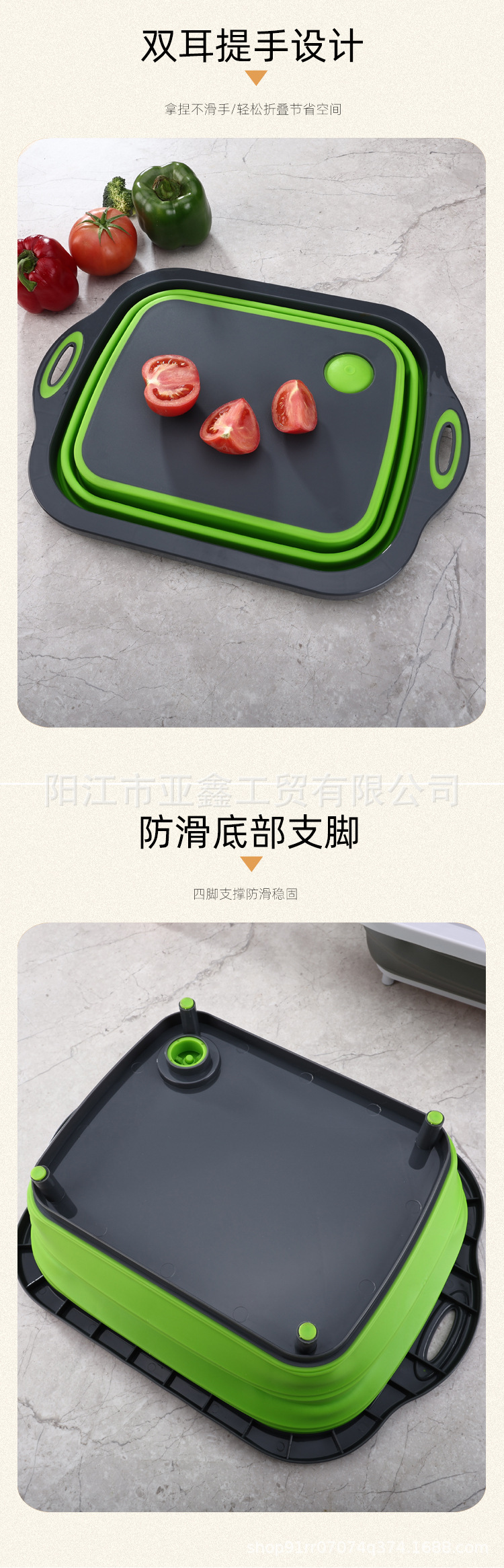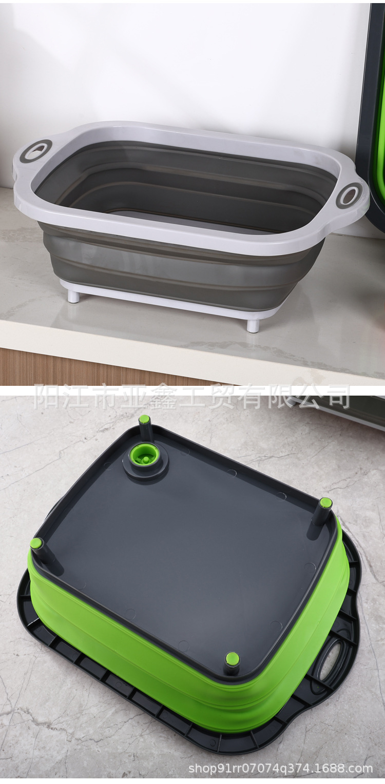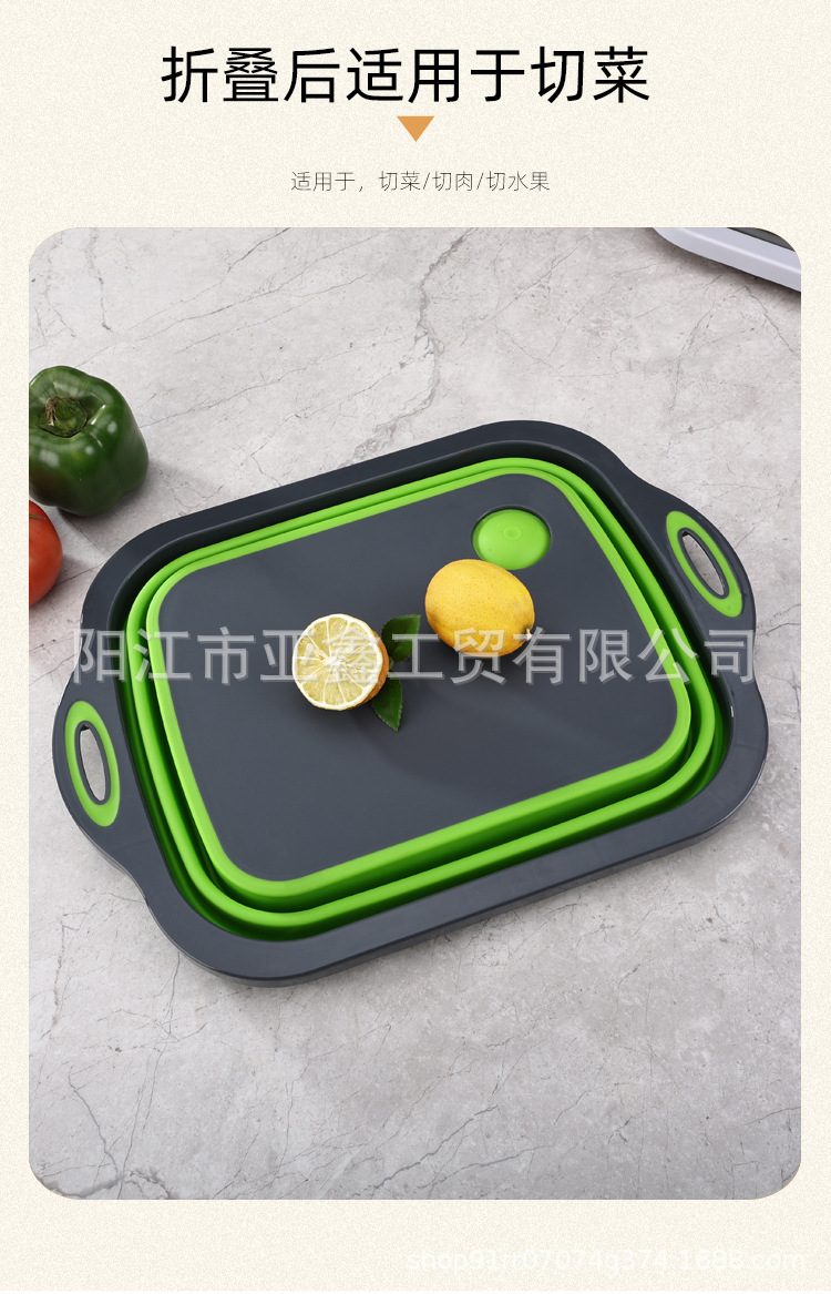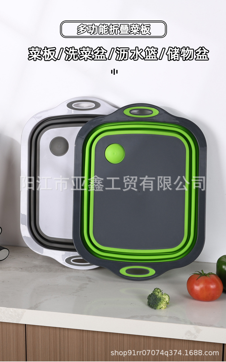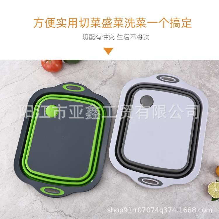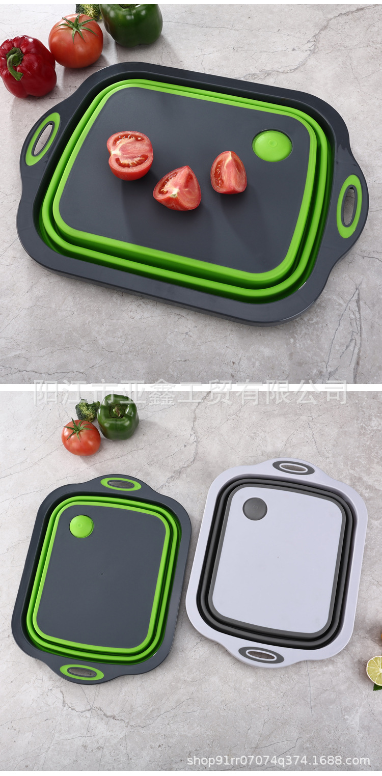 국경 간 인기 판매 휴대용 접이식 도마 이중 목적 야채 절단 및 세척 그릇 다기능 접이식 도마 배수 바구니 3-in-one스토어 가기