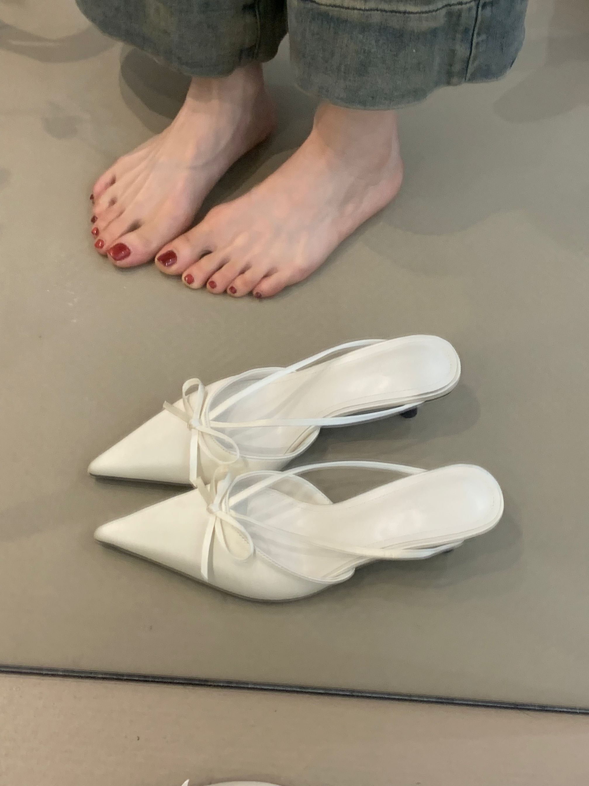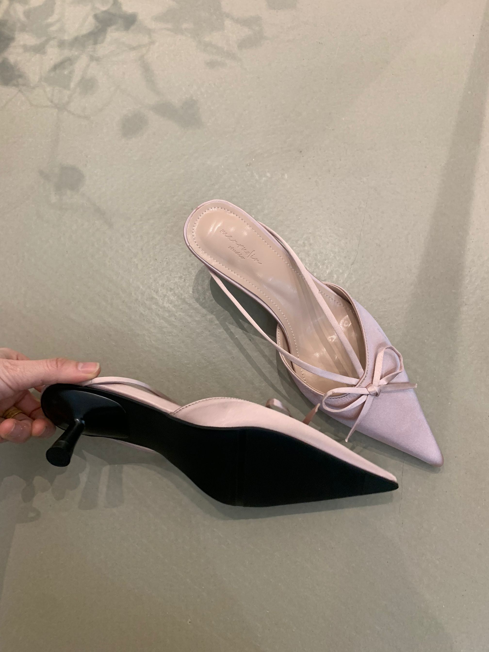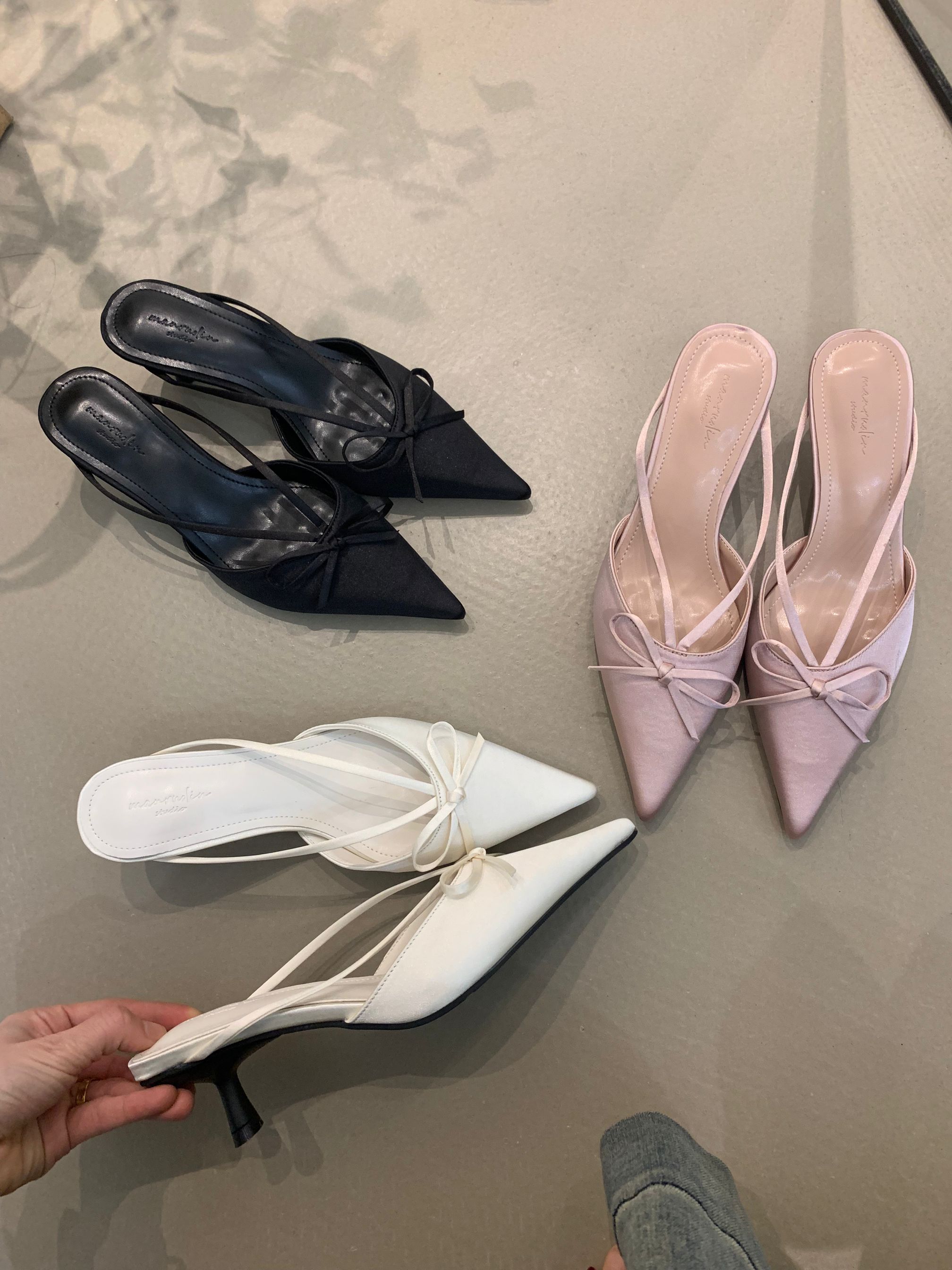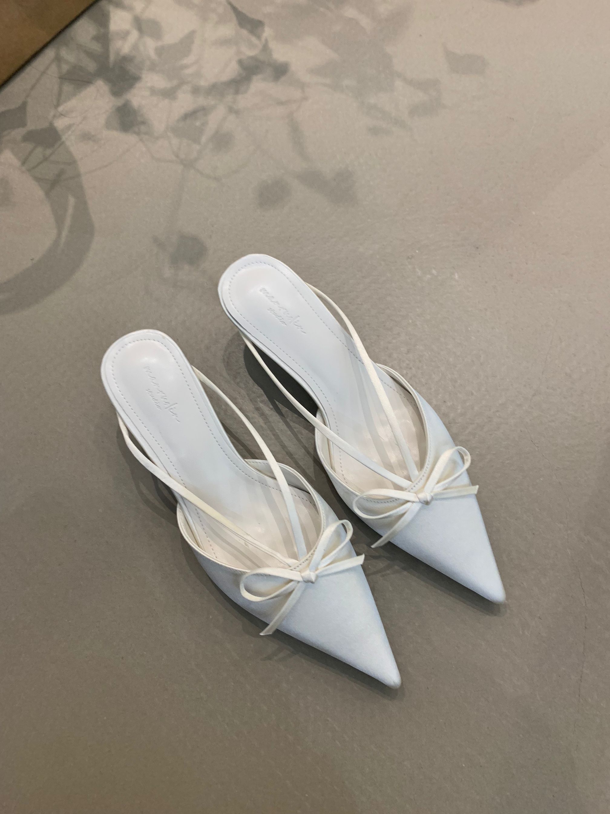 프랑스 스타일 우아한 활 발가락 슬리퍼 2025 봄 달콤한 부드러운 우아한 새틴 뾰족한 스틸레토 힐 하이힐 신발스토어 가기