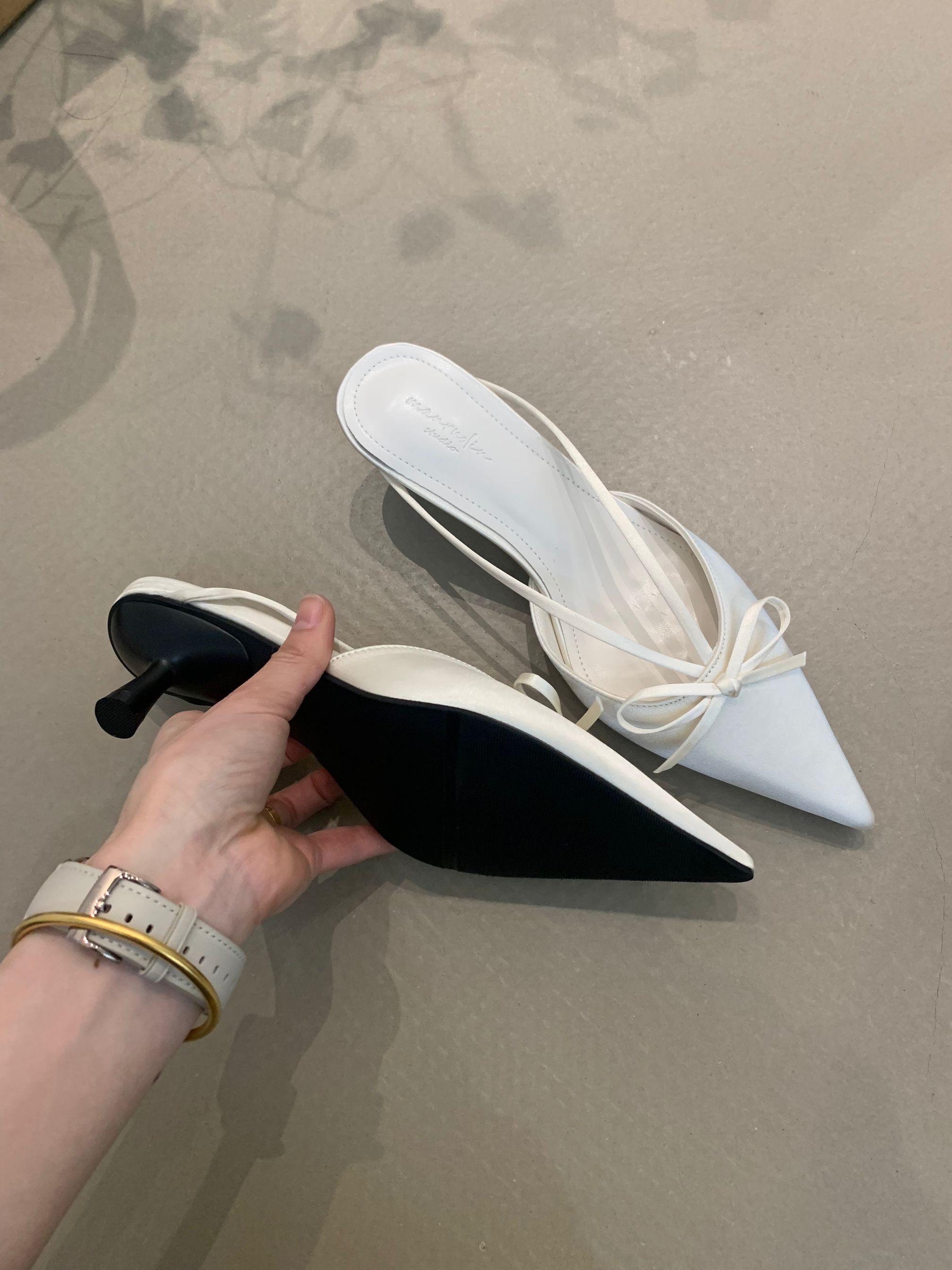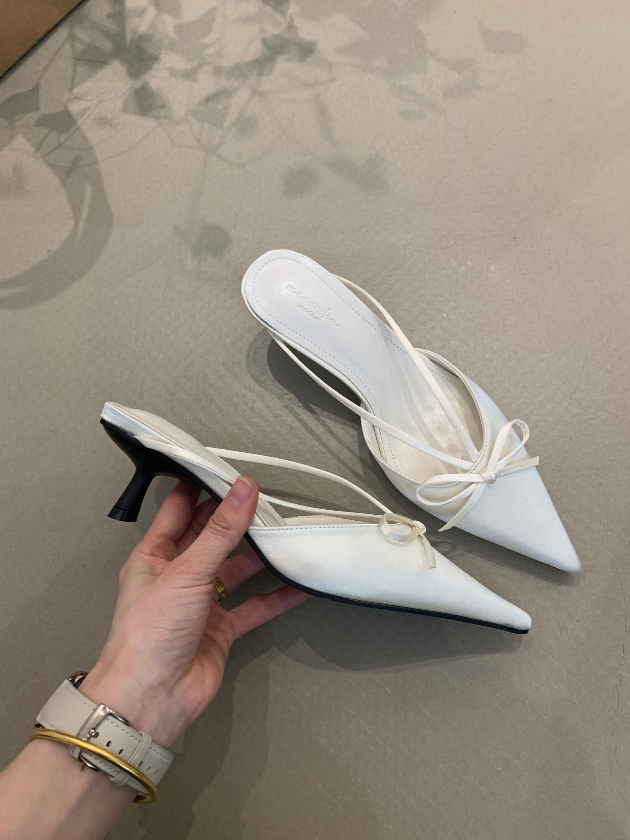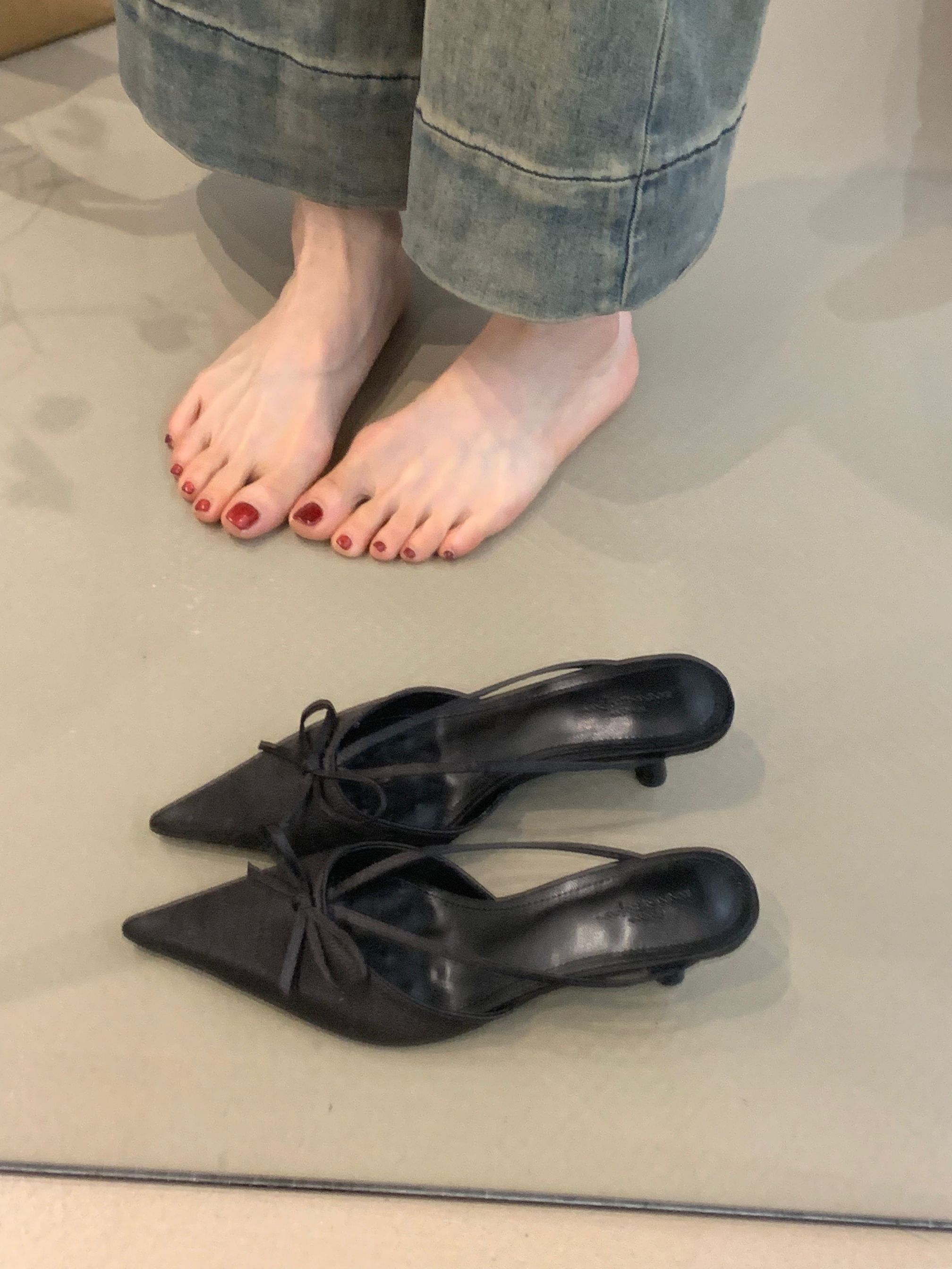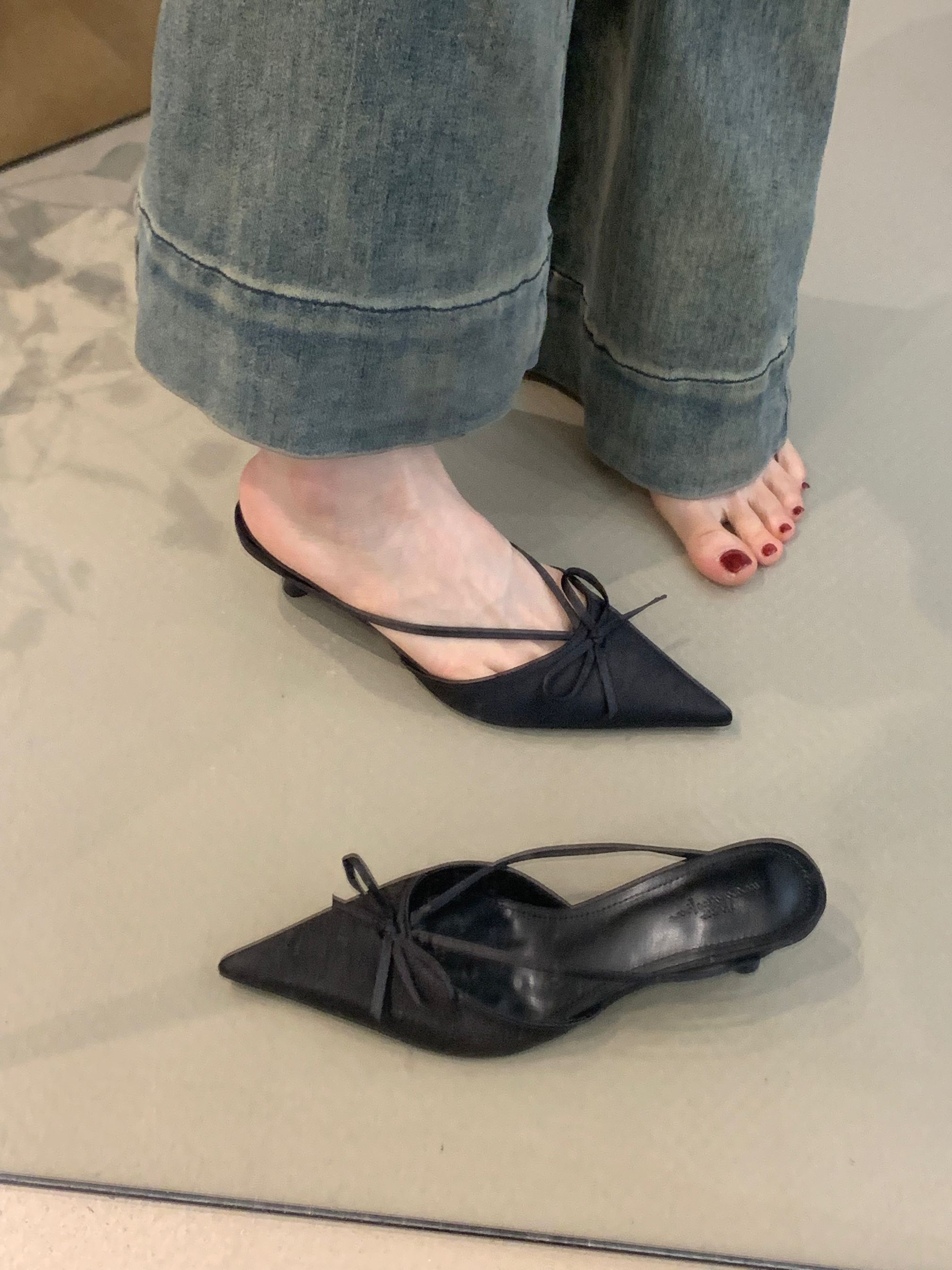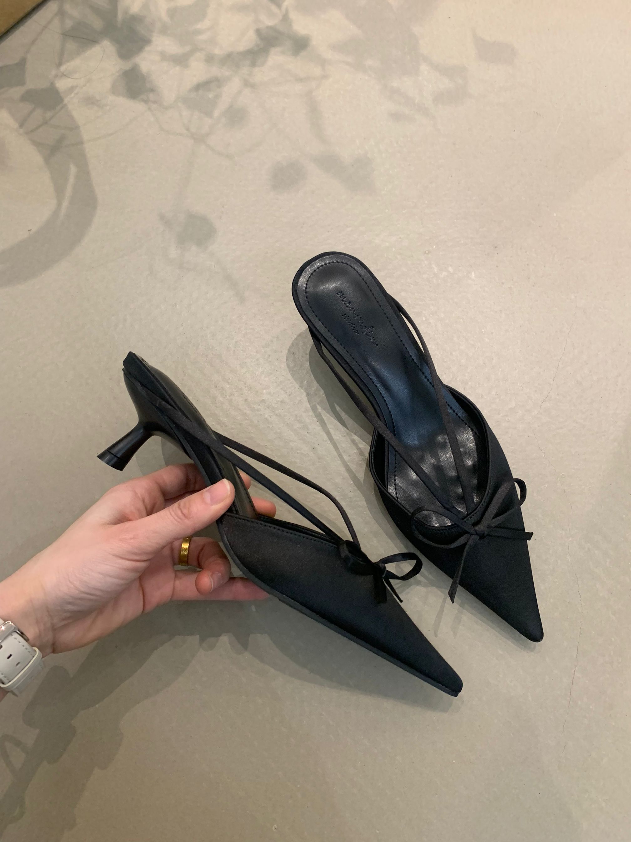 프랑스 스타일 우아한 활 발가락 슬리퍼 2025 봄 달콤한 부드러운 우아한 새틴 뾰족한 스틸레토 힐 하이힐 신발스토어 가기