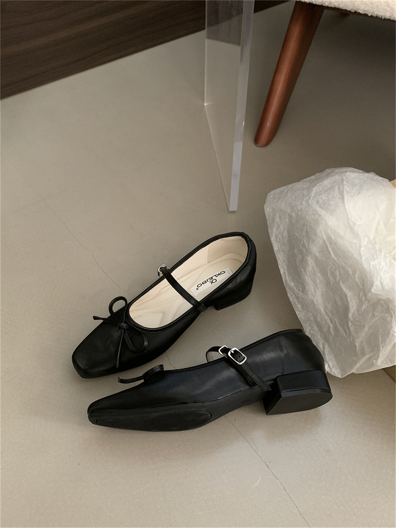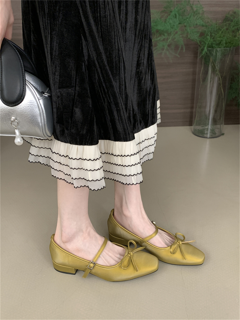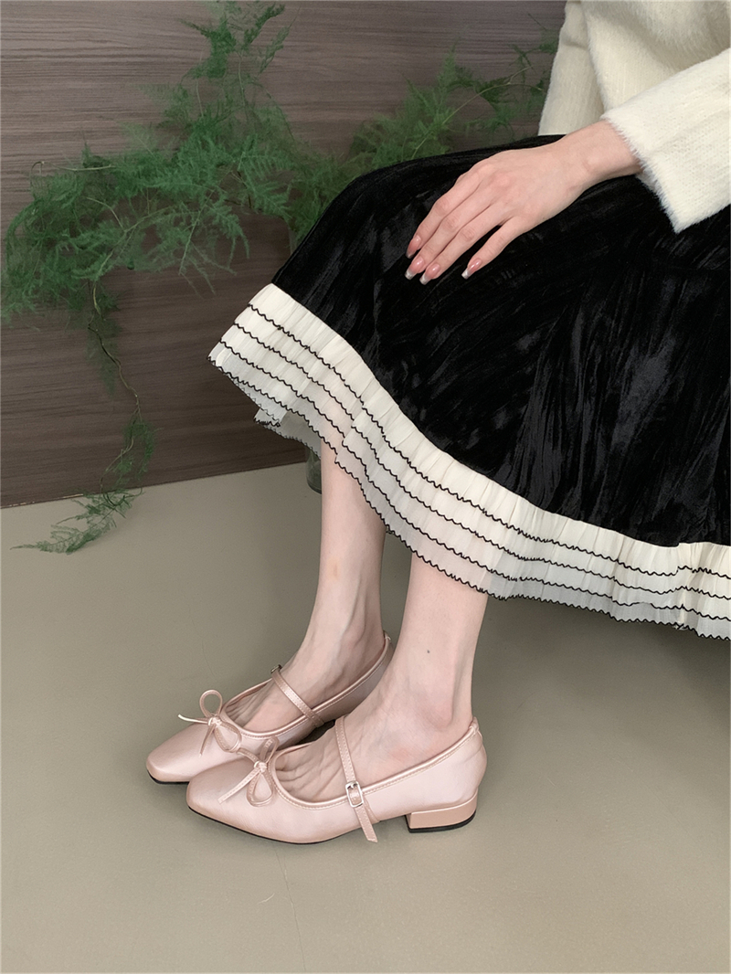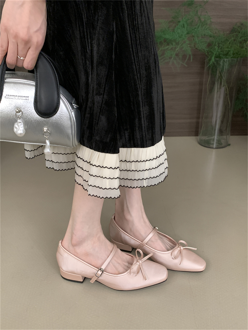 프랑스 이브닝 보우 니치 메리 제인 신발 여성의 2025 새로운 스타일 두꺼운 원피스 요정 싱글 레이어 신발 펌프