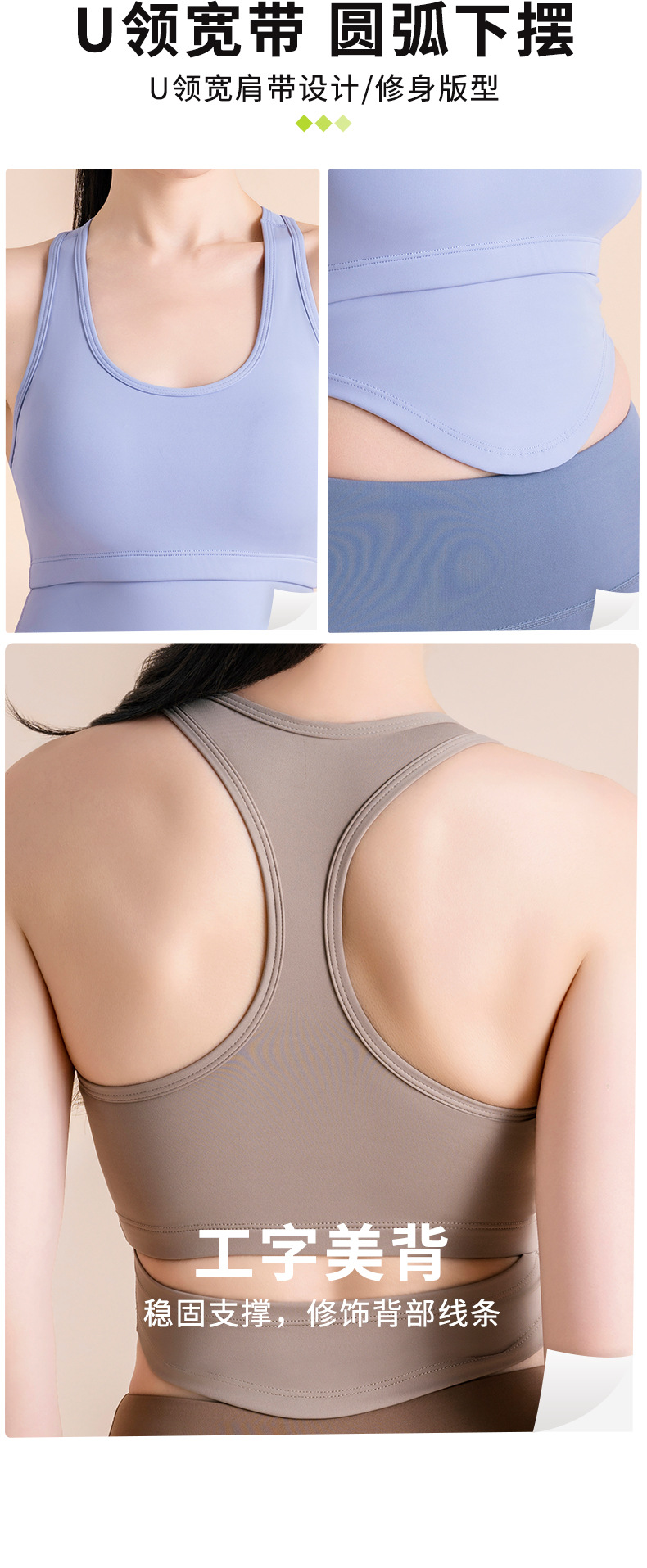 노딩 고강도 충격방지 푸쉬업 스포츠 브라 U자형 컷아웃 요가탑 브라프리 피트니스웨어 탑