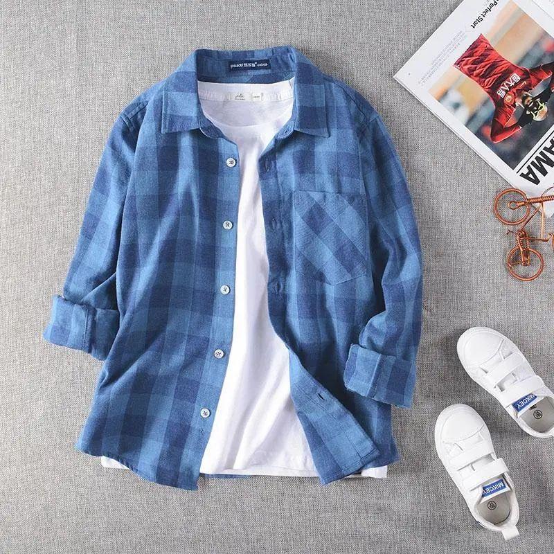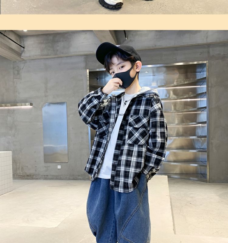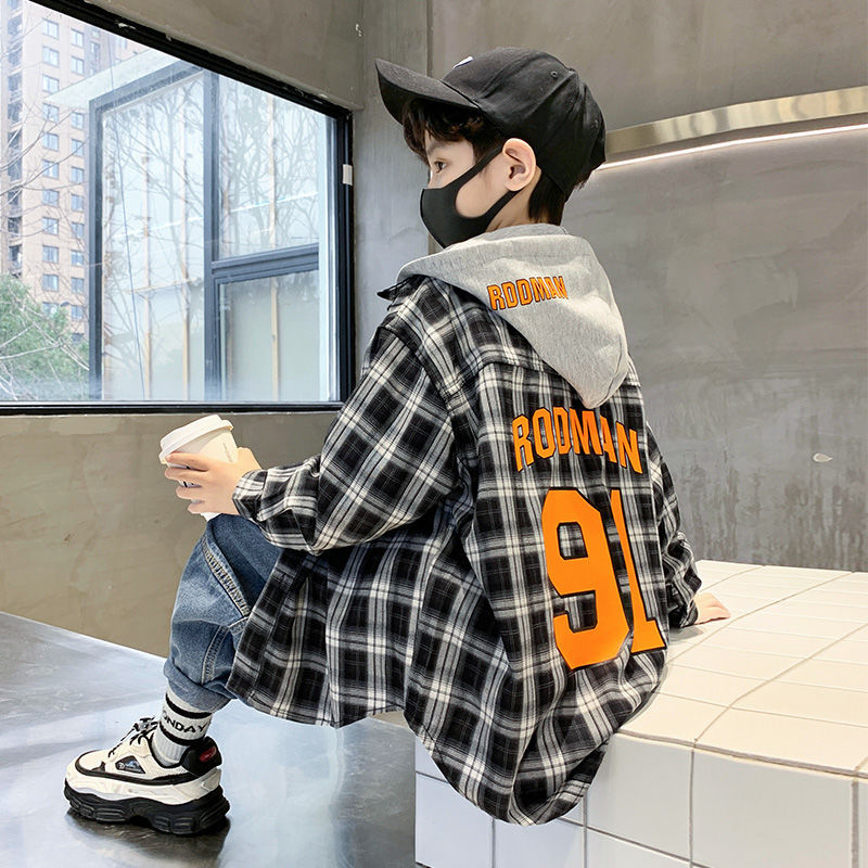 소년 격자 무늬 셔츠 가을 2025 새로운 어린이 가을 긴 소매 셔츠 봄과 가을 느슨한 코트 트렌디스토어 가기