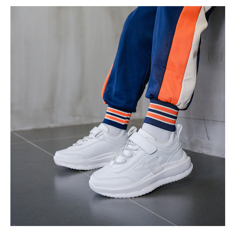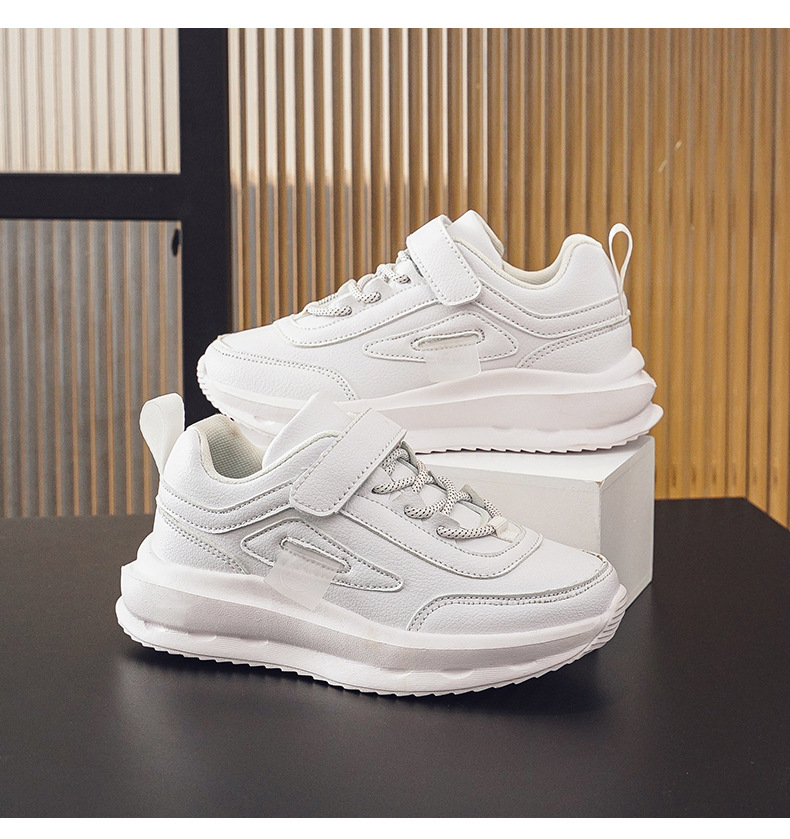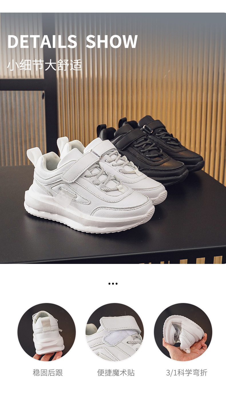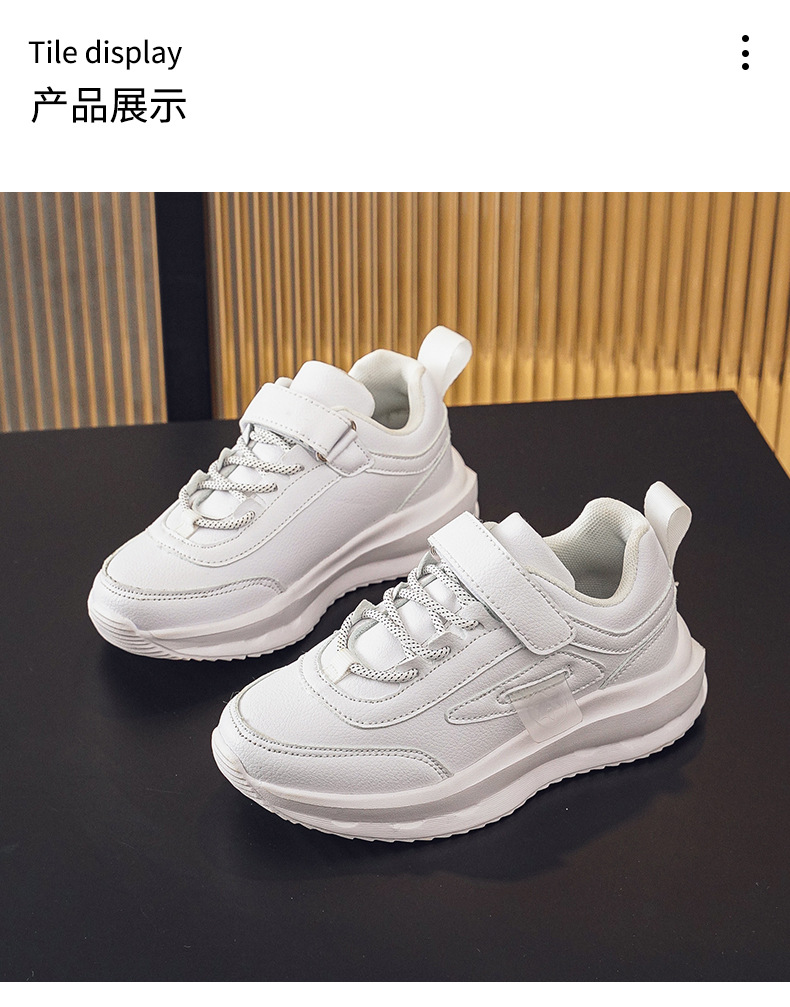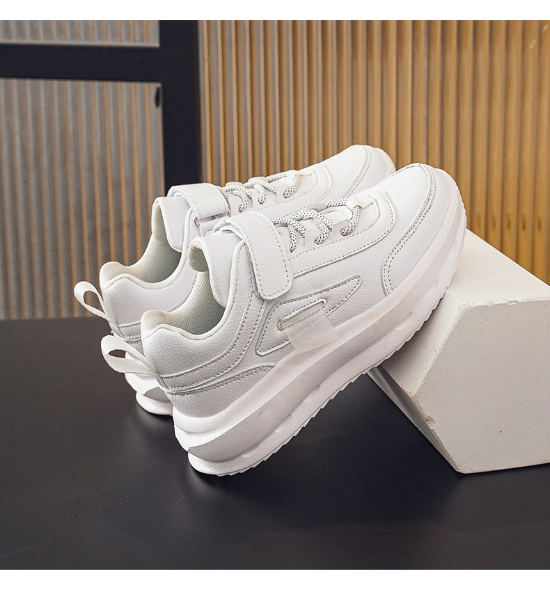 2025 새로운 어린이 흰색 신발 학교 초등학생 화이트 운동화 사계절 봄 가죽 운동화