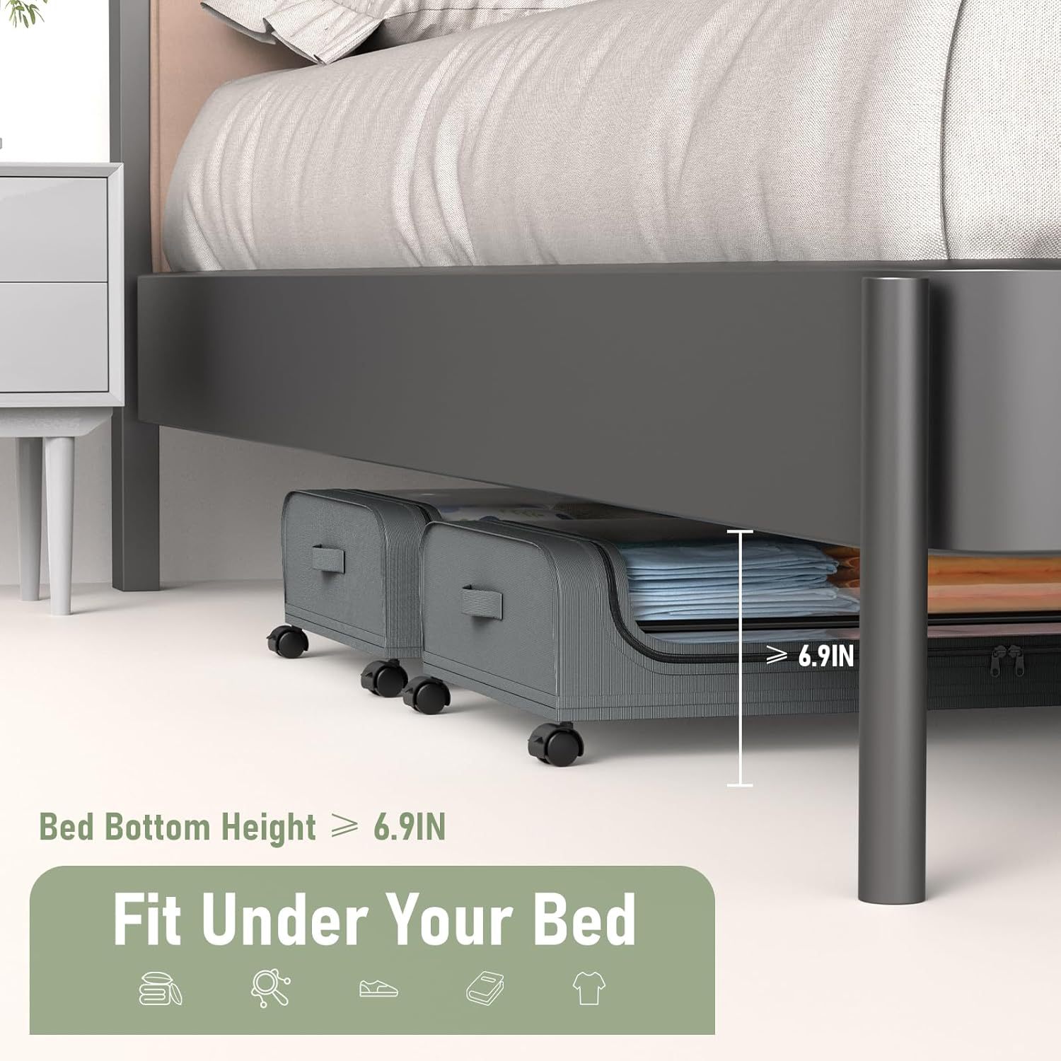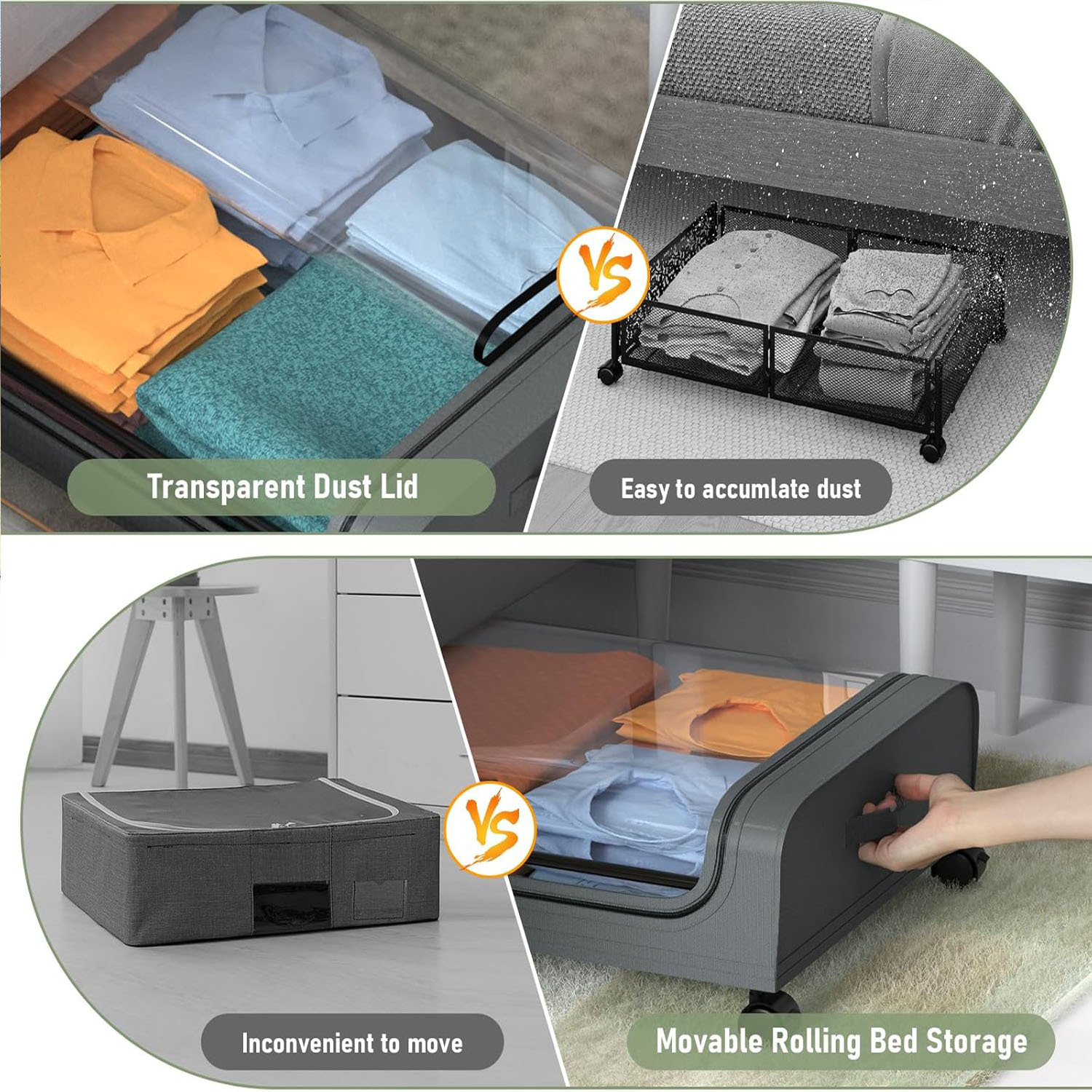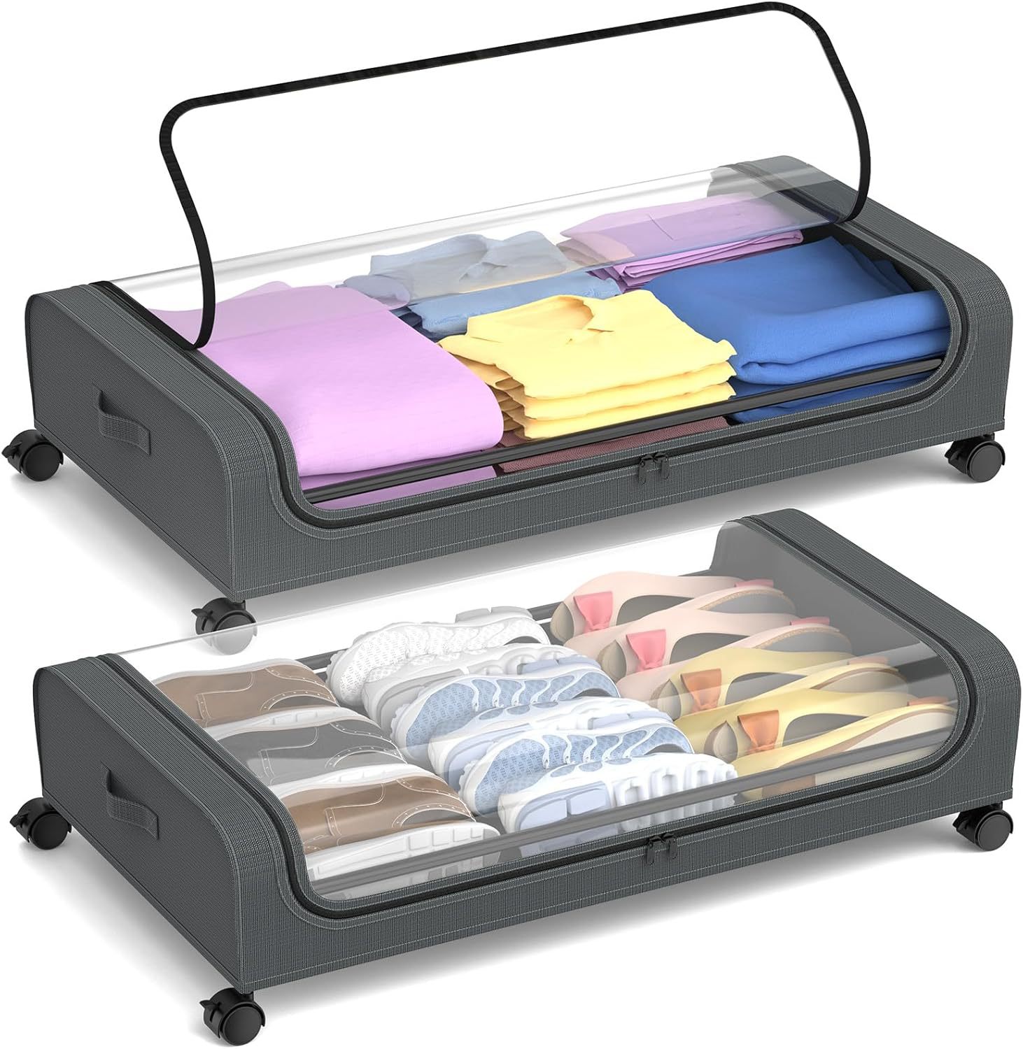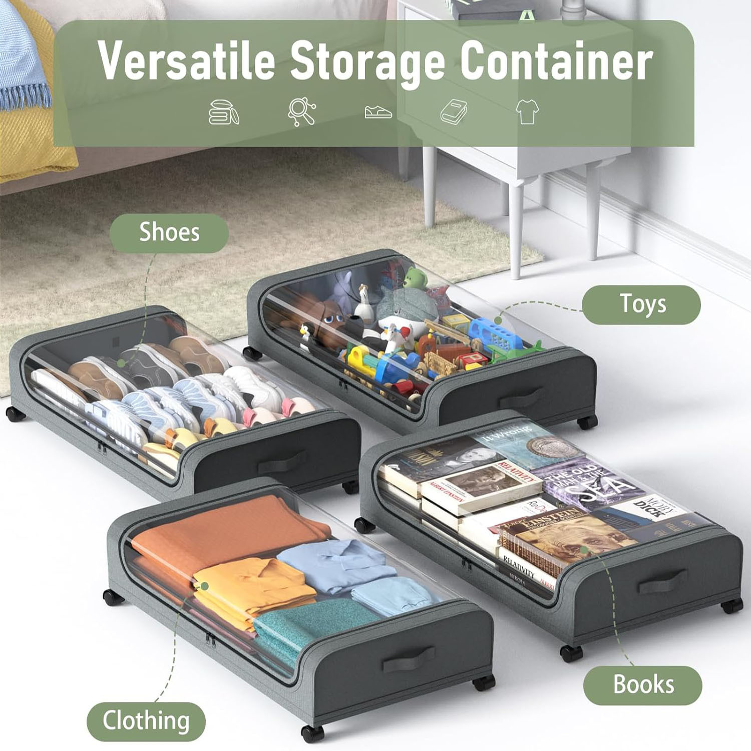 옥스포드 천 침대 밑 옷, 책, 장난감 수납용 대용량 바닥형 수납 선반
