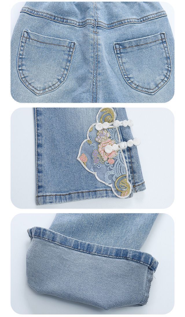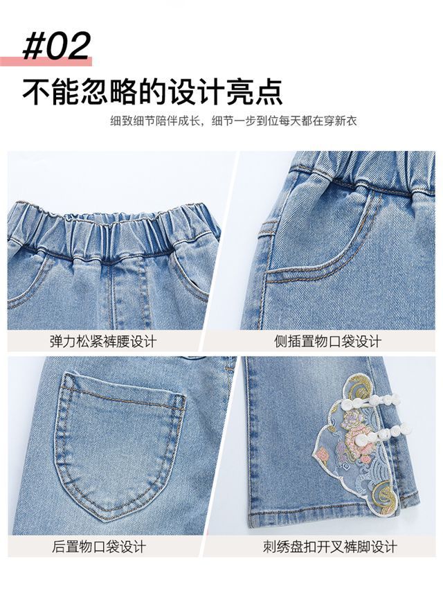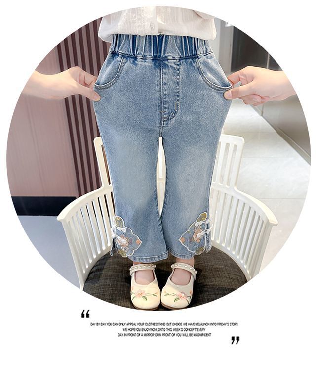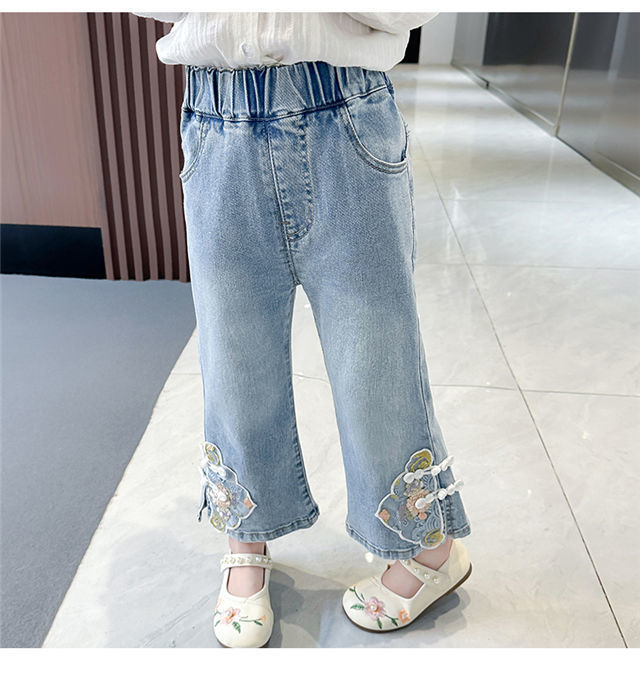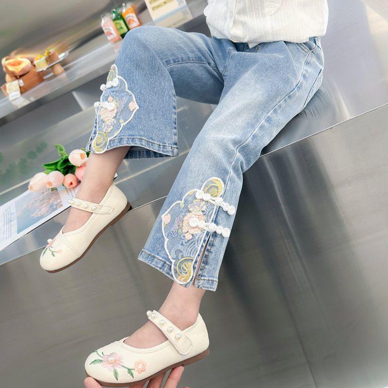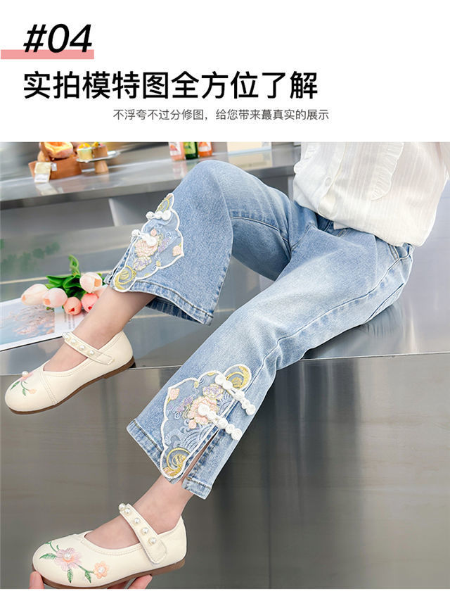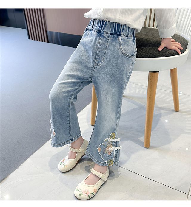 소녀 Guofeng Horn 청바지 2025 새로운 봄과 가을 어린이 봄 버클 새로운 중국 바지스토어 가기