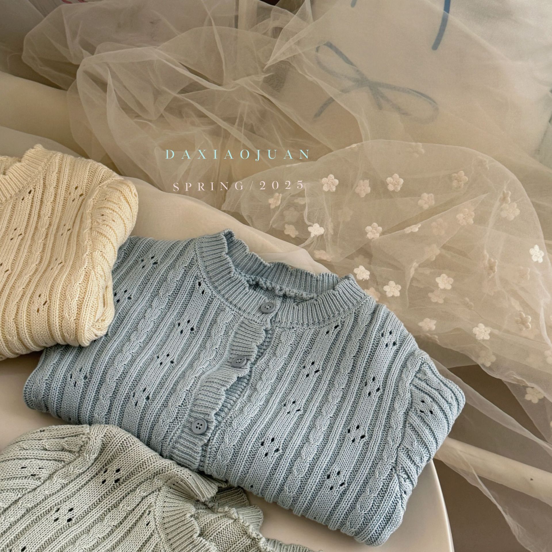 사이즈 롤 25 봄 얇은 단색 어린이 몰란디 컬러 할로우 니트 카디건 재킷 여성 아동복 서양식스토어 가기