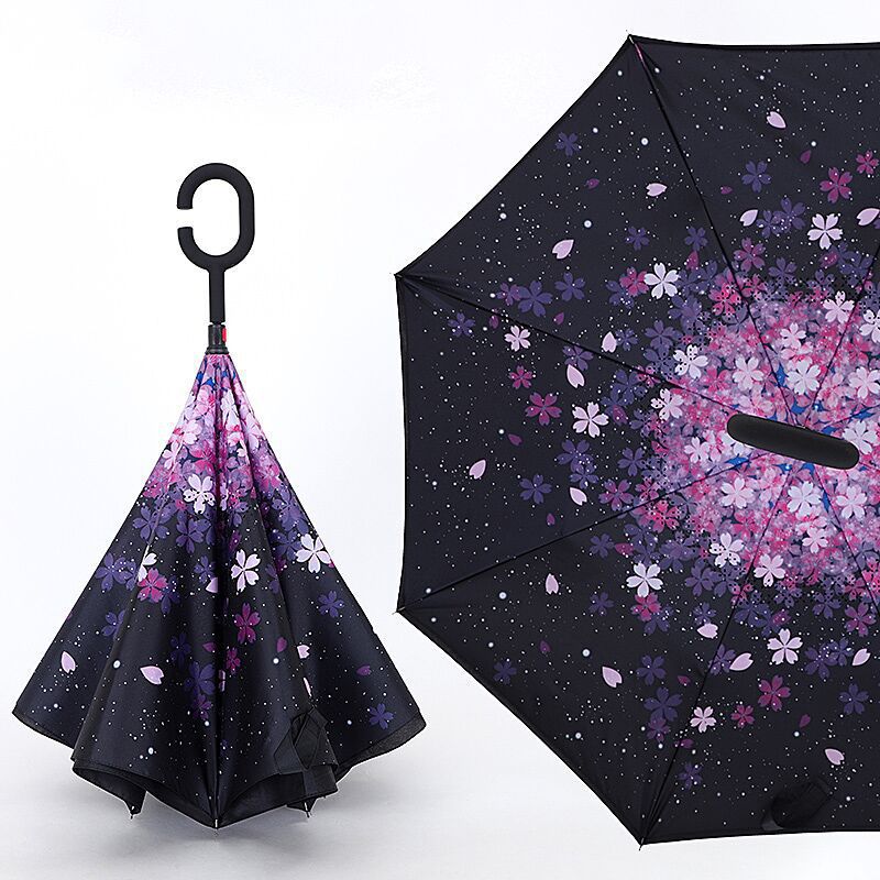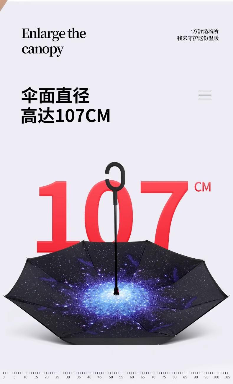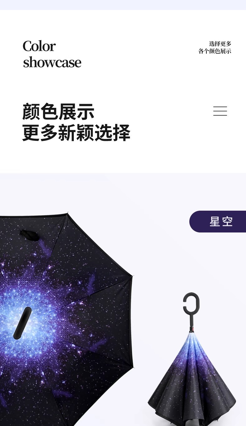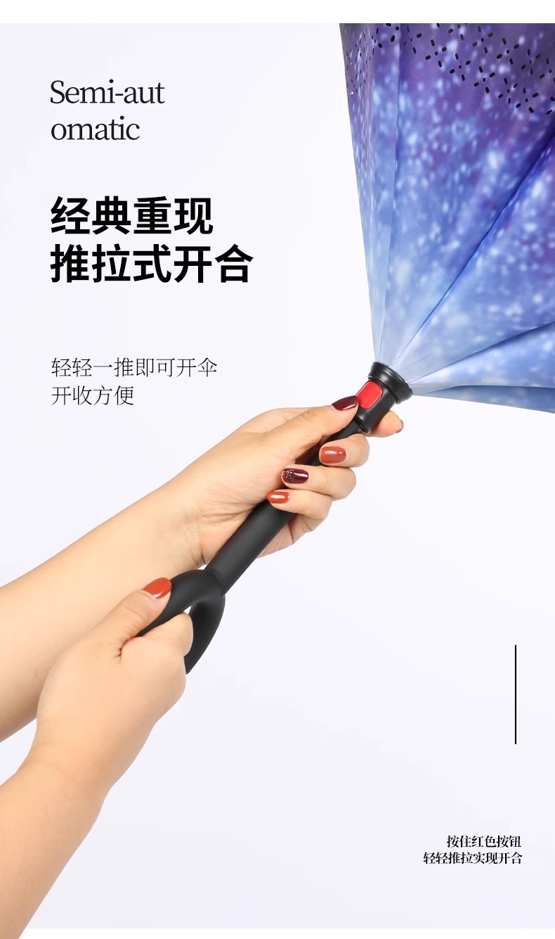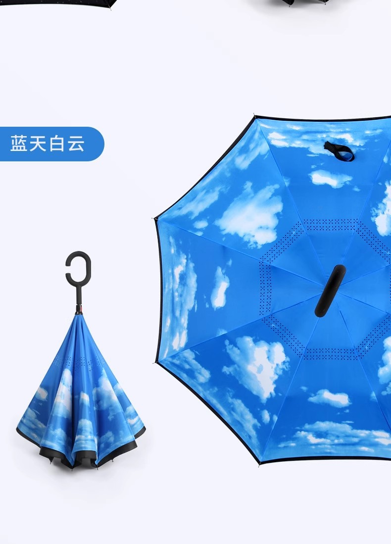 스트레이트 로드 더블 레이어 리버스 우산 자동차 선물 광고 우산 긴 핸들 우산 C 형 핸즈프리 리버스 우산 인쇄 로고스토어 가기