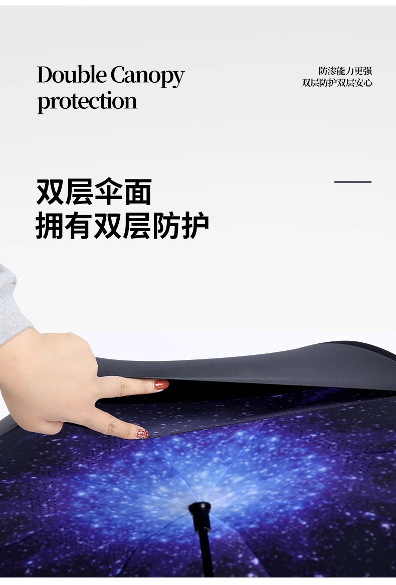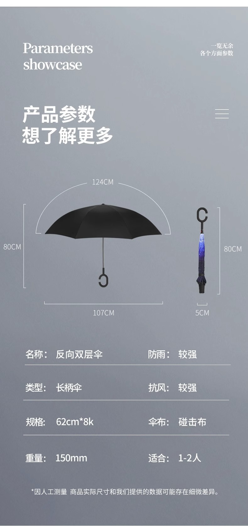 스트레이트 로드 더블 레이어 리버스 우산 자동차 선물 광고 우산 긴 핸들 우산 C 형 핸즈프리 리버스 우산 인쇄 로고