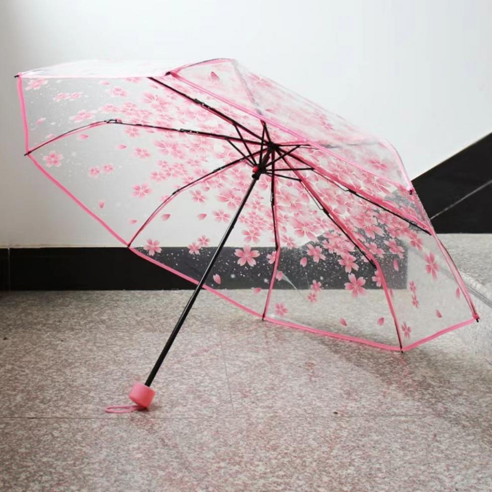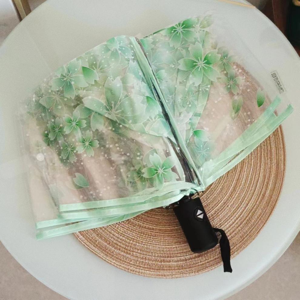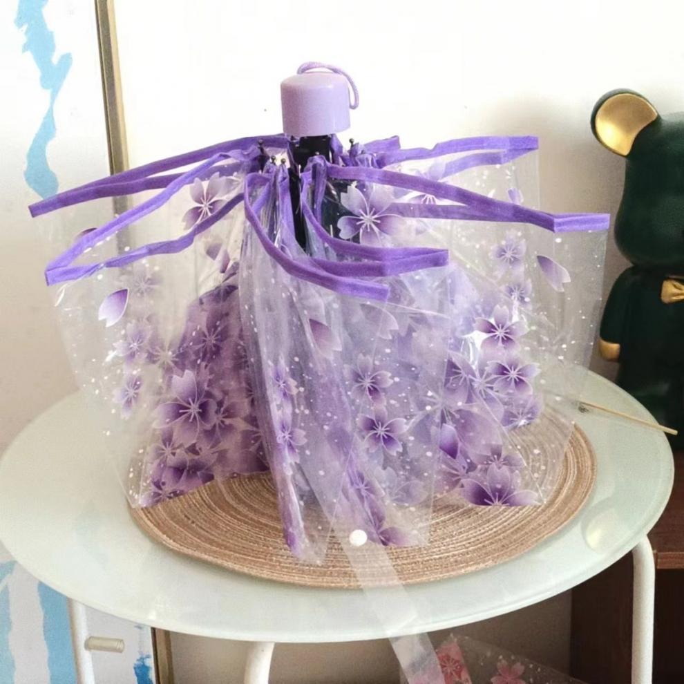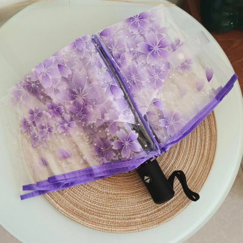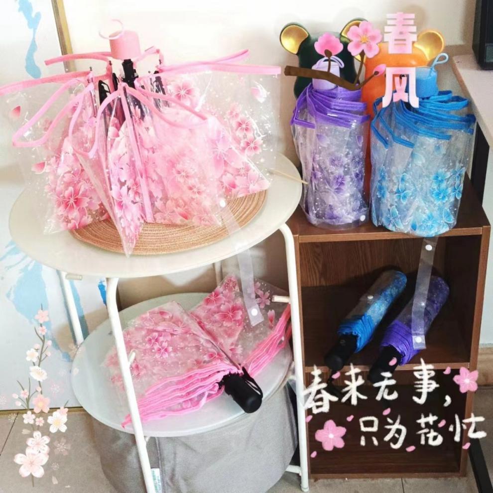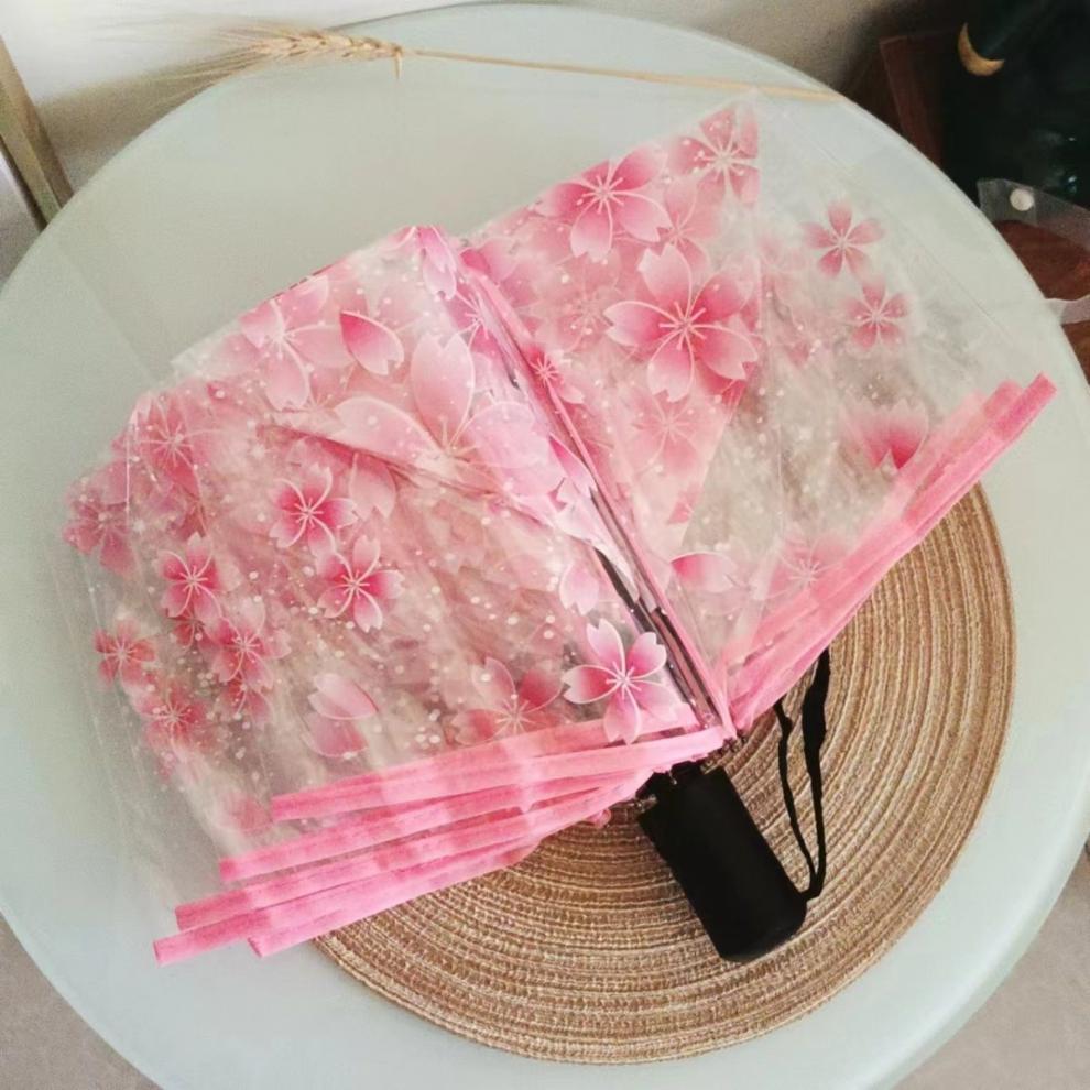 벚꽃 투명 여신 부드러운 자매 3 배 접는 우산 자동 우산 소녀 심장 재고 도매스토어 가기