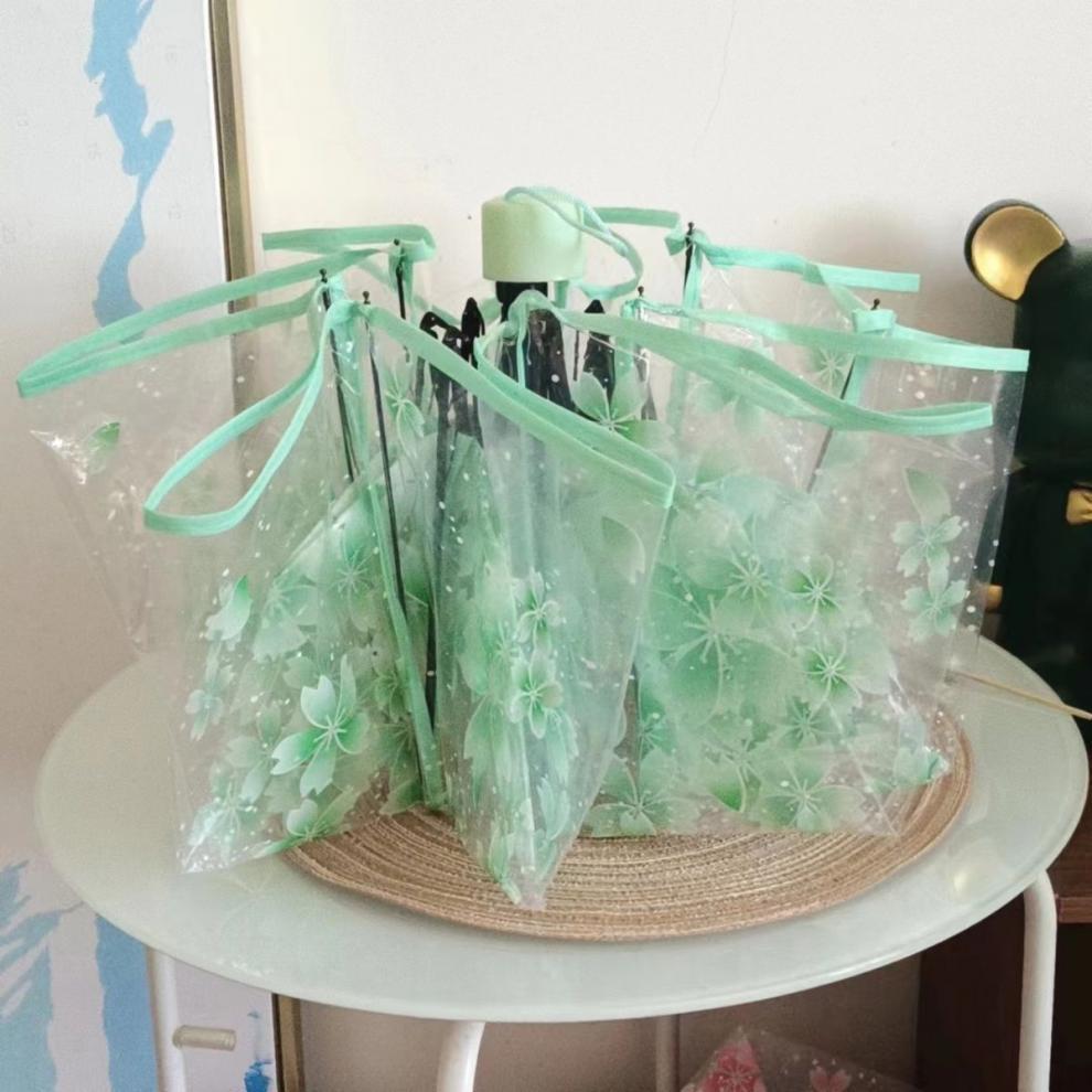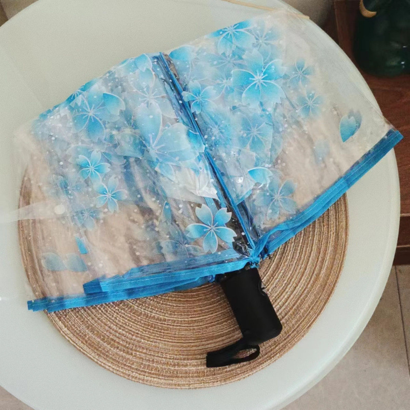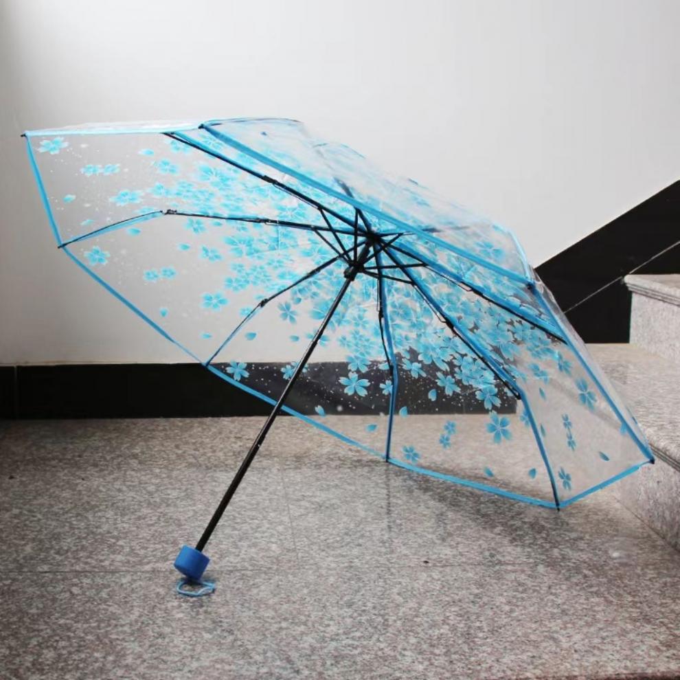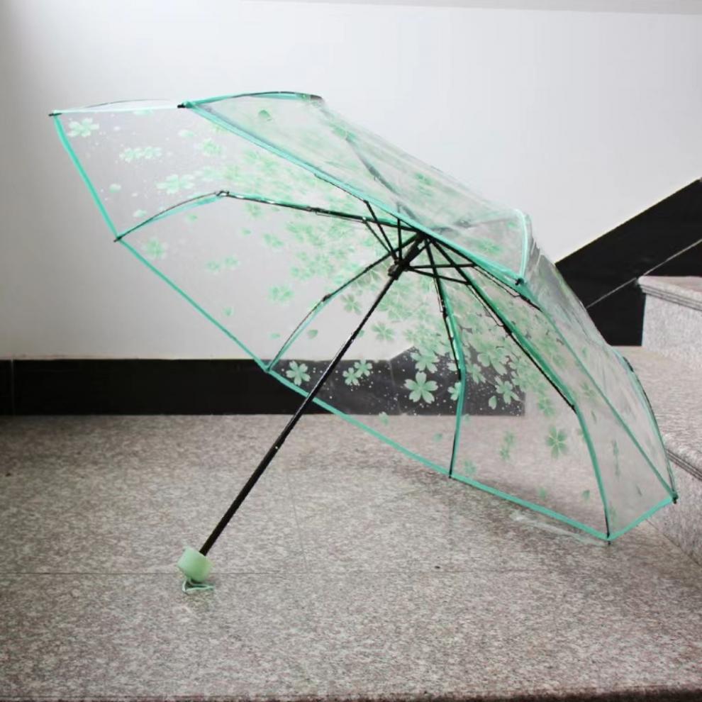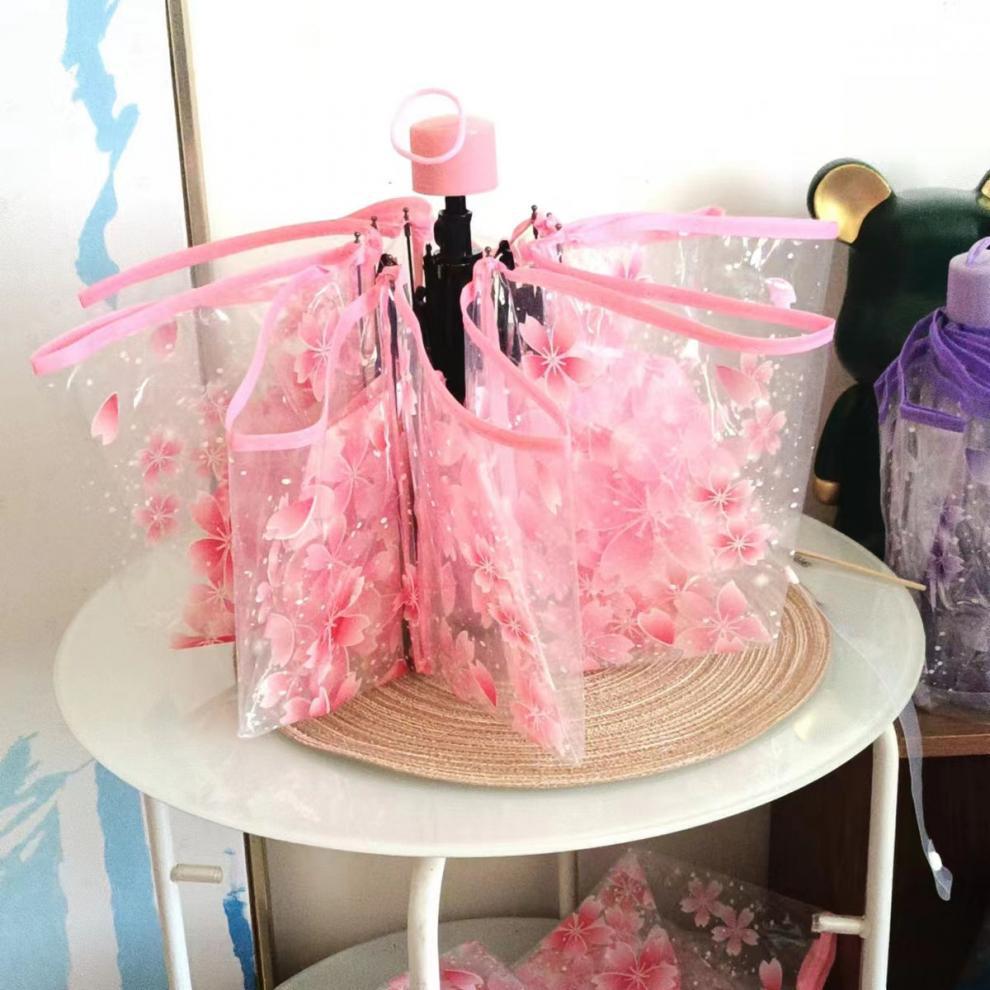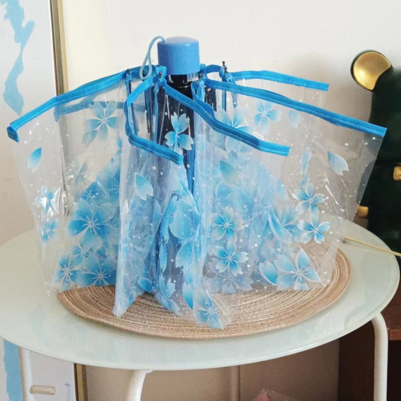 벚꽃 투명 여신 부드러운 자매 3 배 접는 우산 자동 우산 소녀 심장 재고 도매스토어 가기
