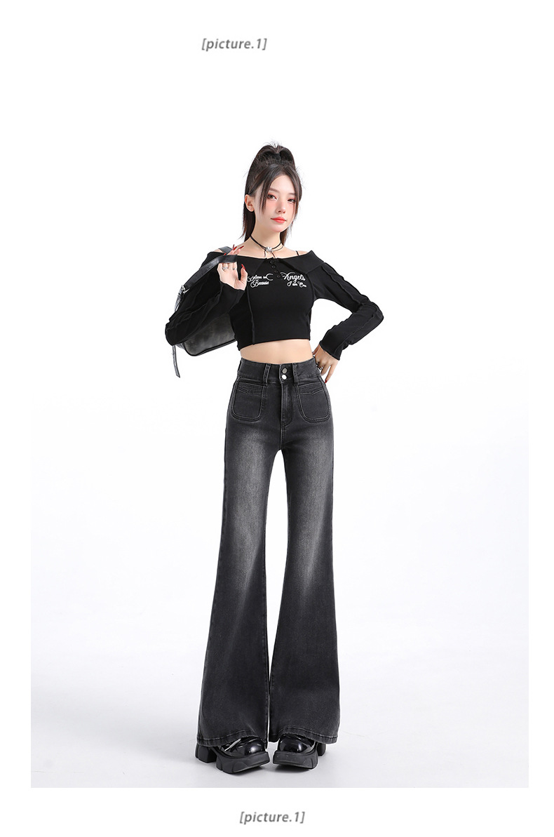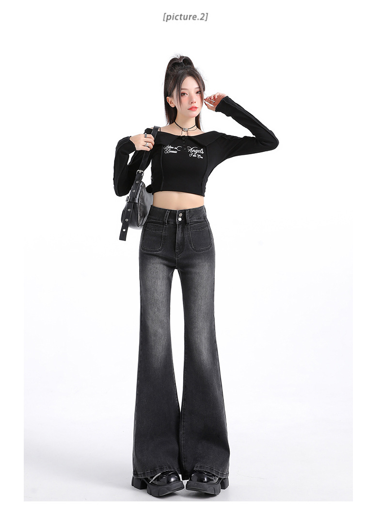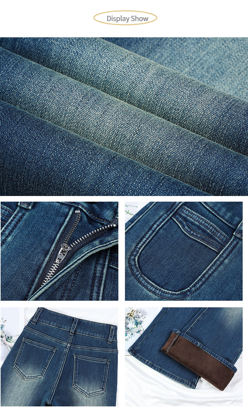 벨벳 안감 신축성 있는 마이크로 플레어 청바지 여성용 겨울 신상 하이웨이스트 슬림핏 스트레이트 레그 레깅스 아닌 9부 바지스토어 가기