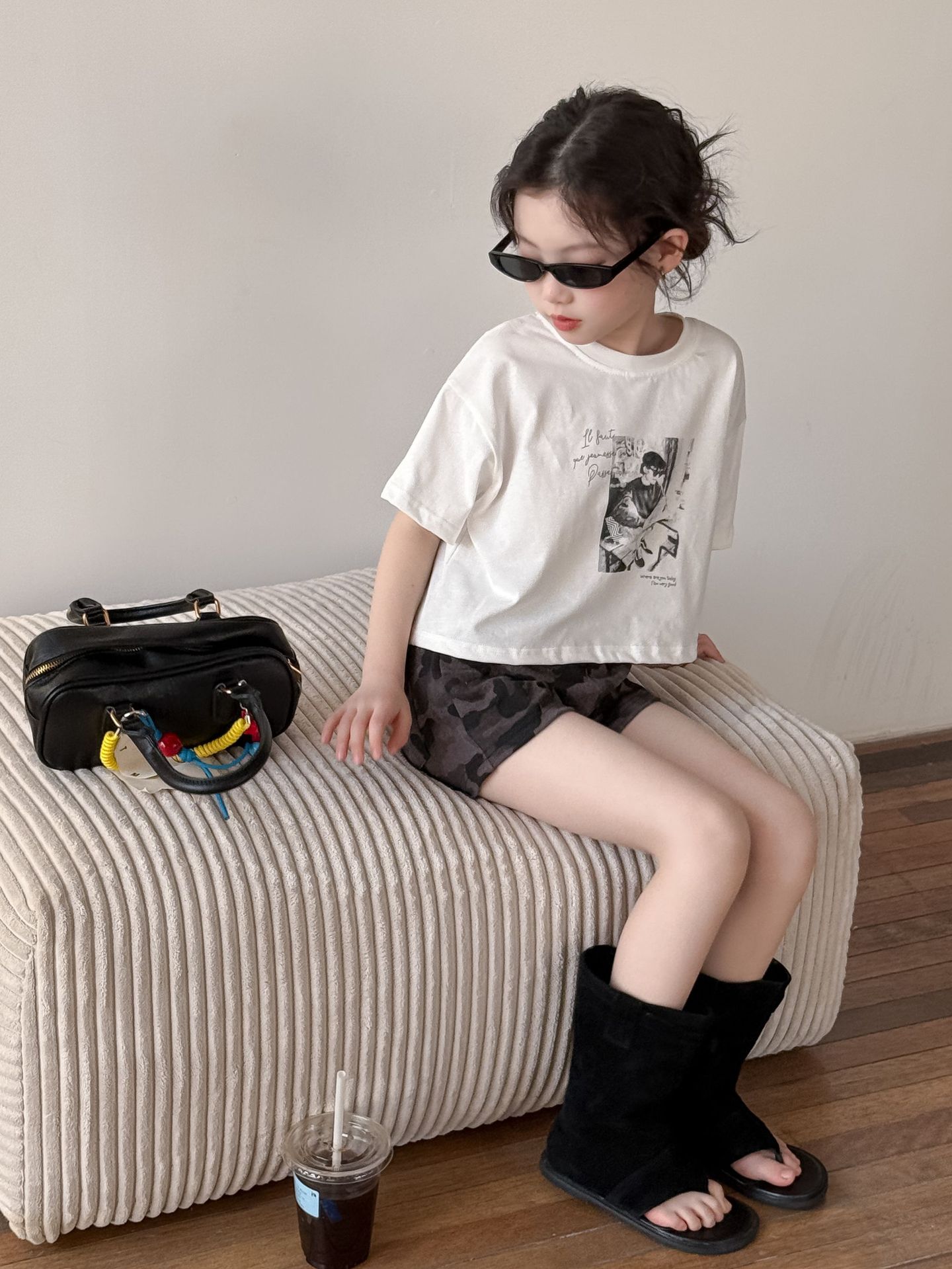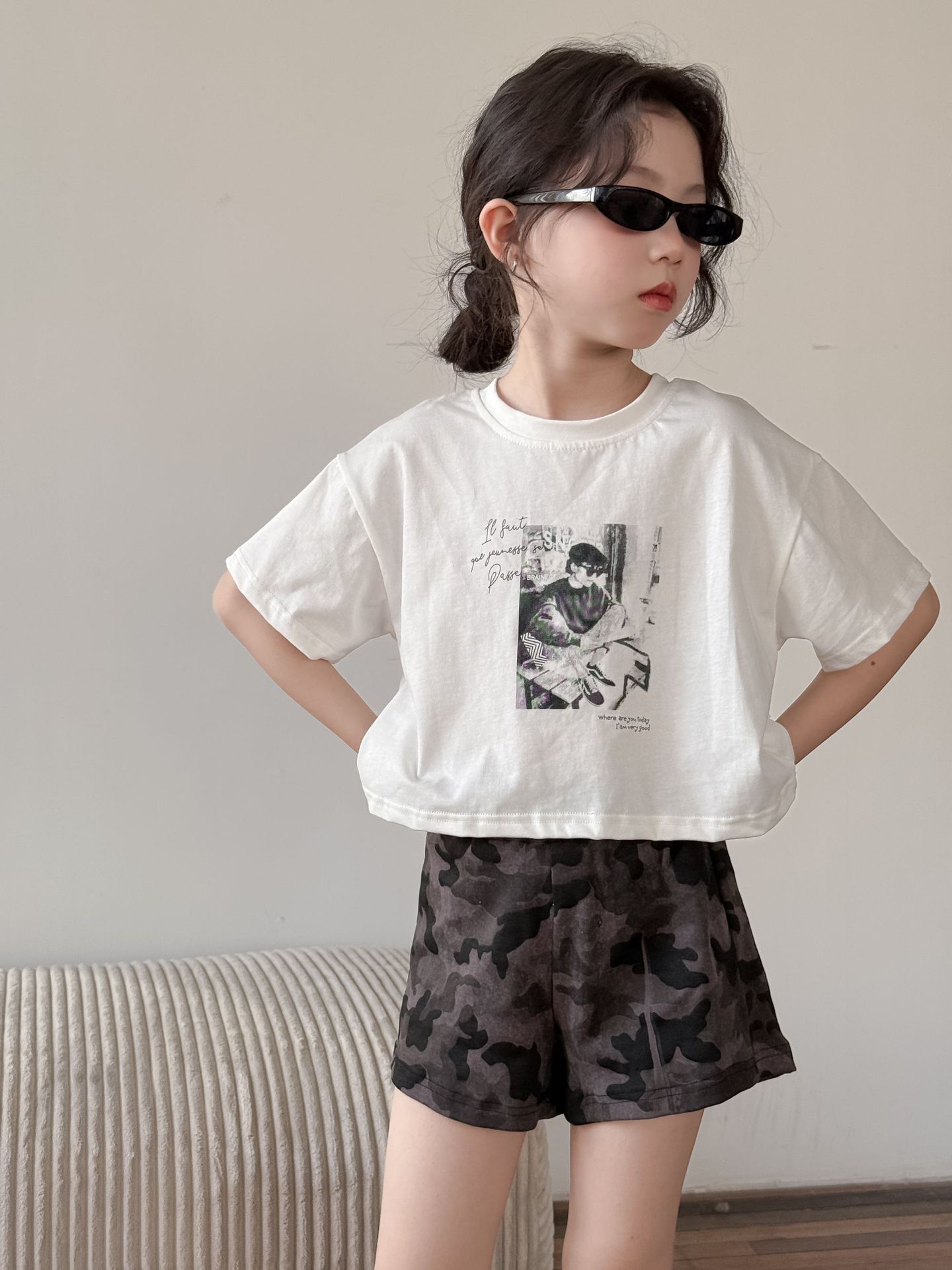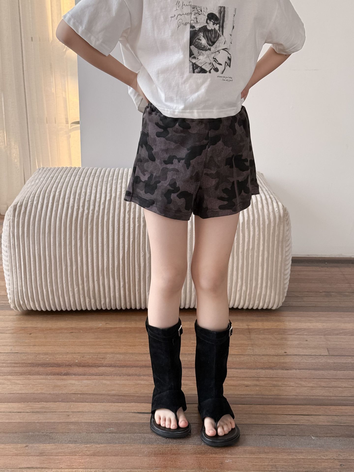 어린이 바지 2025 여름 새 소녀 유행 레오파드 무늬 반바지 여성 아기 뜨거운 소녀 스타일 넓은 다리 바지 위장 뜨거운 바지스토어 가기