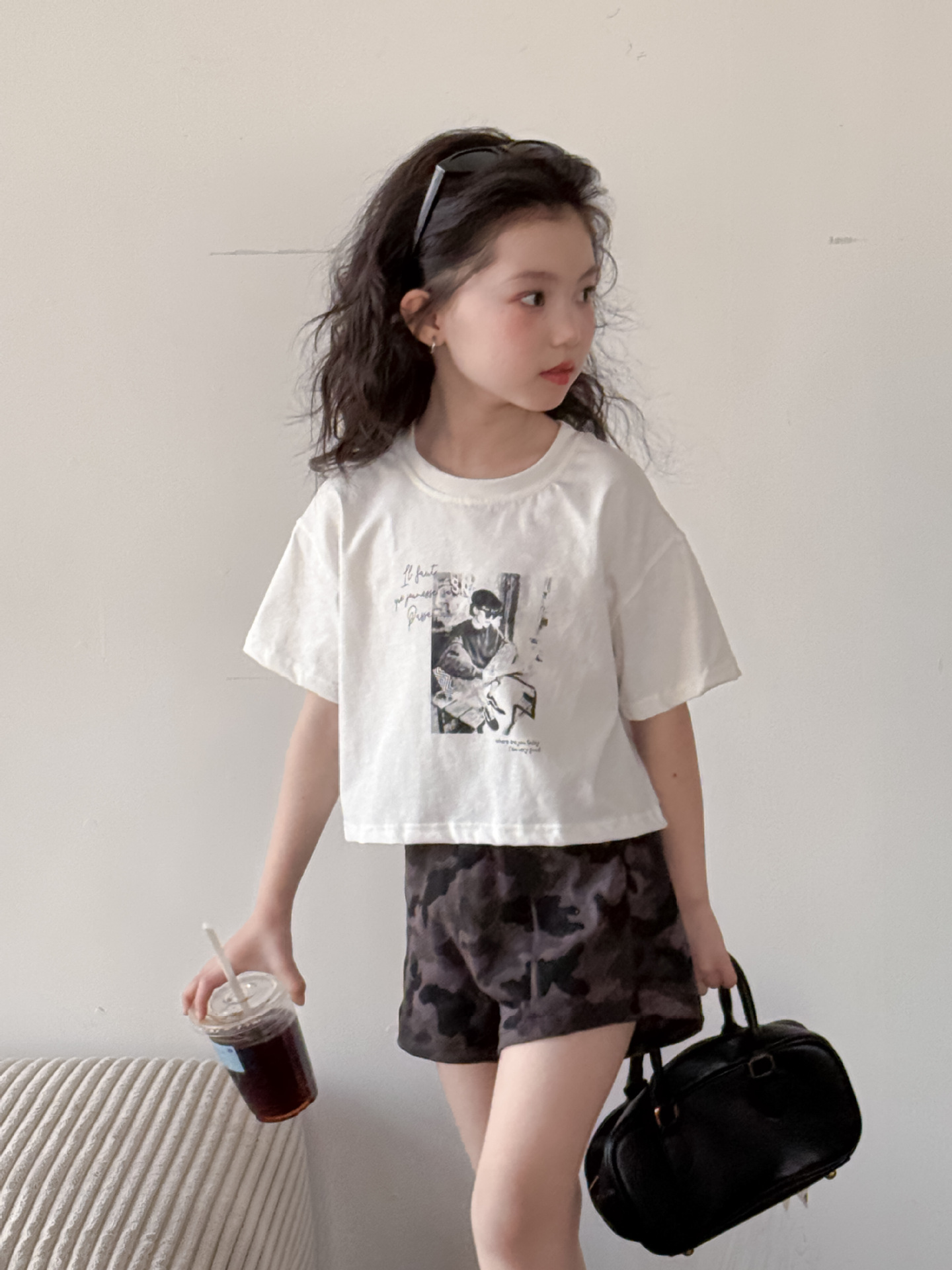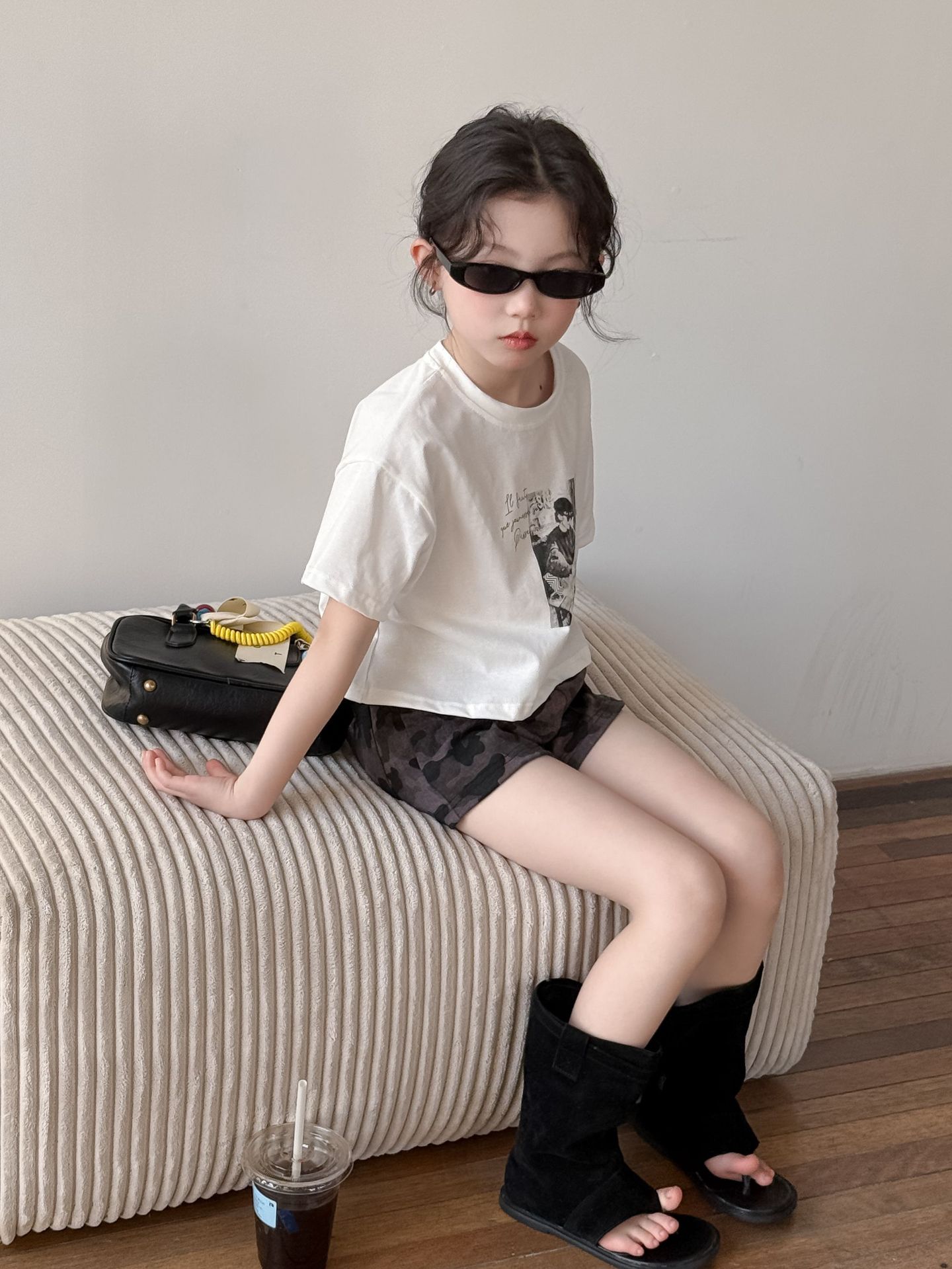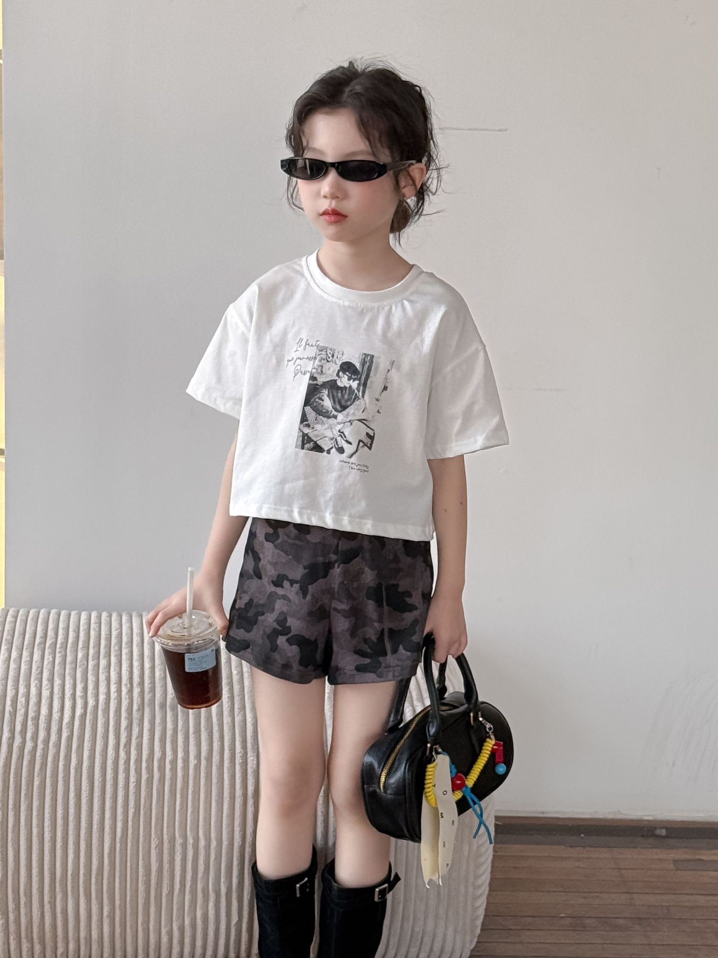 어린이 바지 2025 여름 새 소녀 유행 레오파드 무늬 반바지 여성 아기 뜨거운 소녀 스타일 넓은 다리 바지 위장 뜨거운 바지