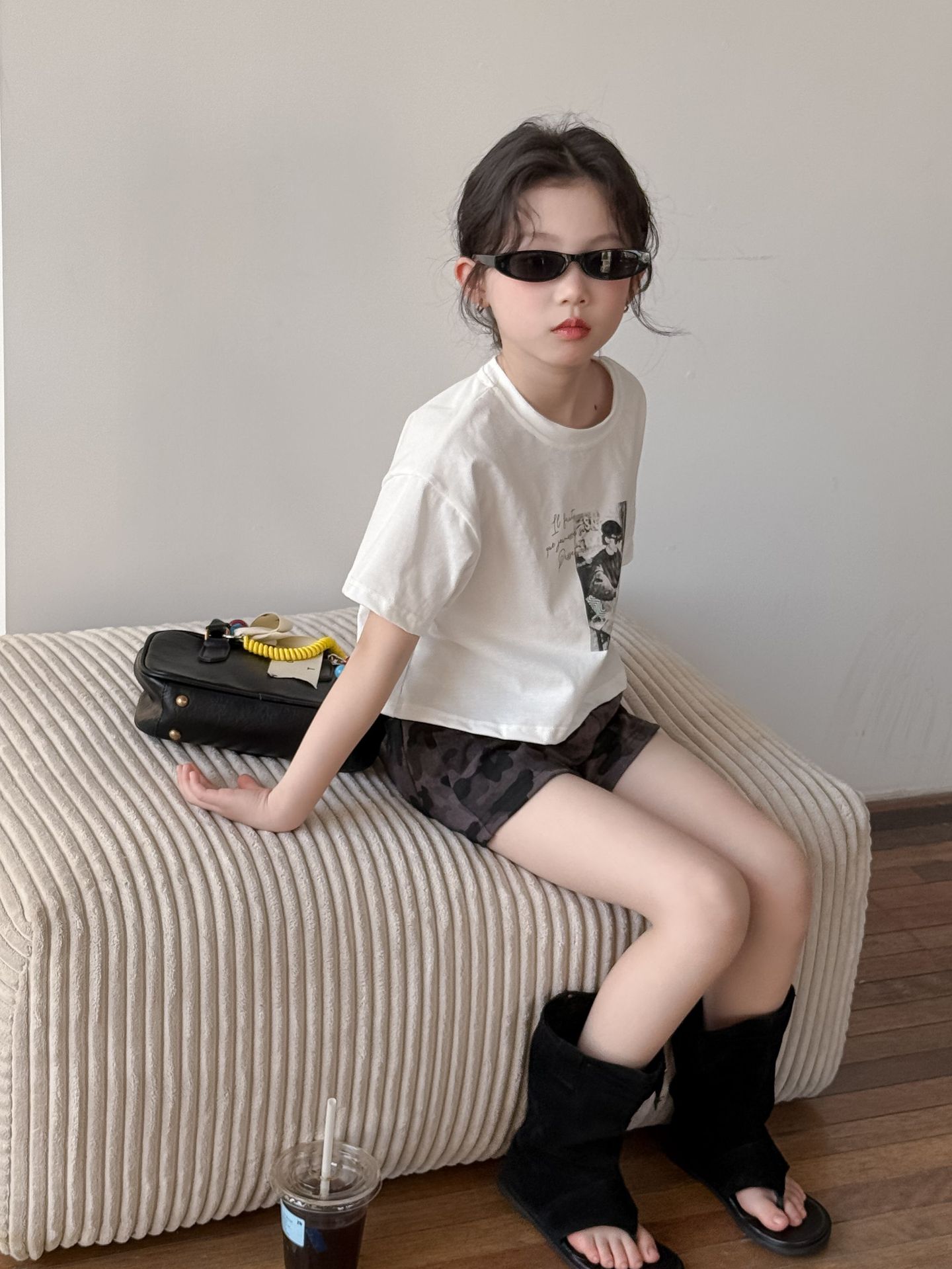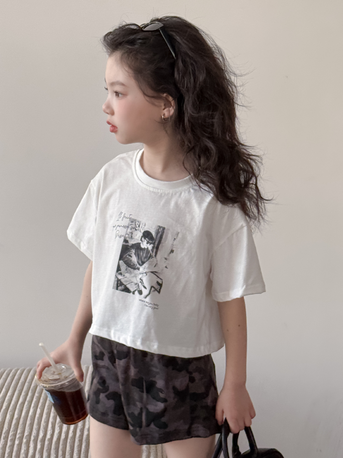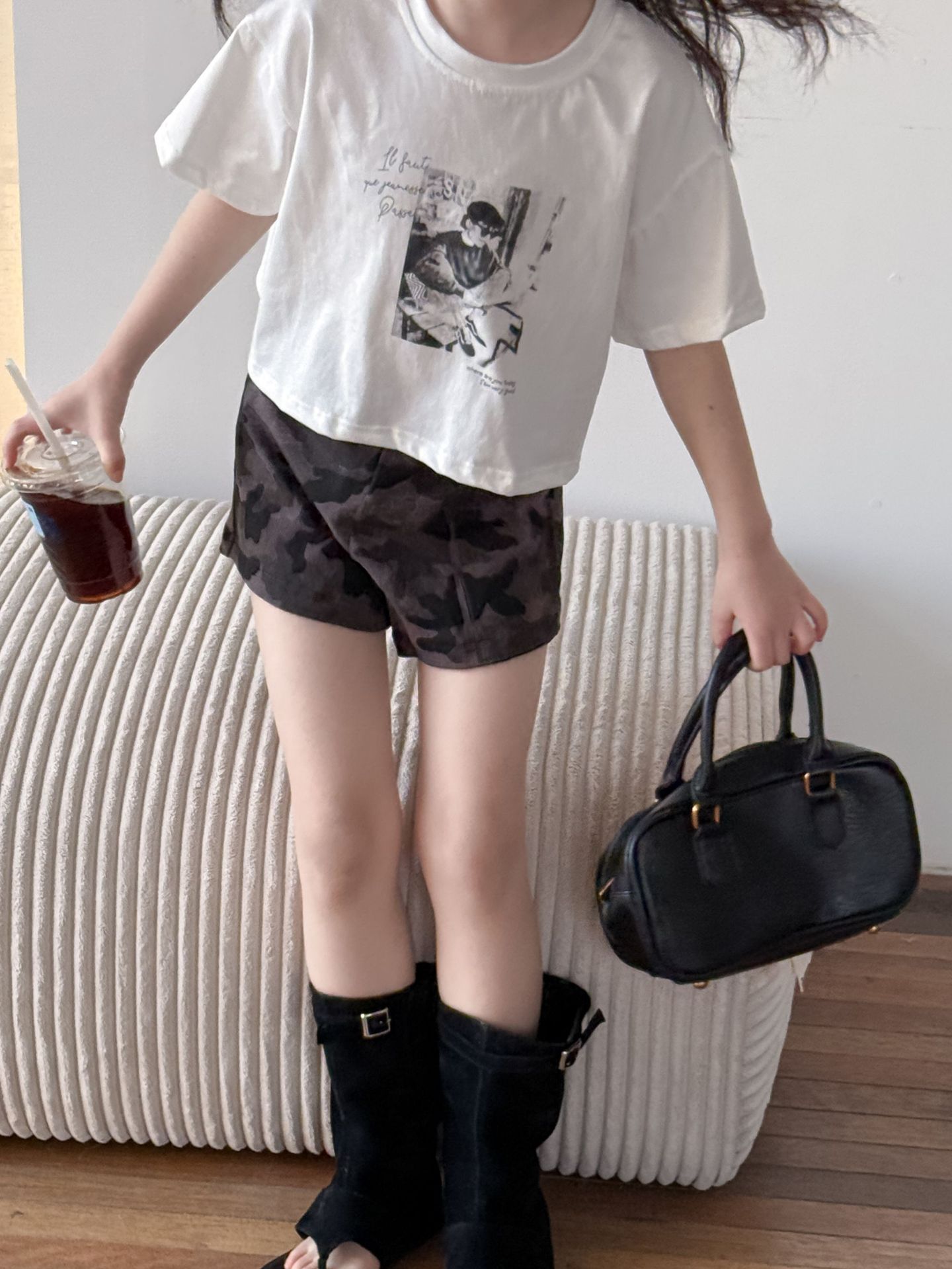 어린이 바지 2025 여름 새 소녀 유행 레오파드 무늬 반바지 여성 아기 뜨거운 소녀 스타일 넓은 다리 바지 위장 뜨거운 바지