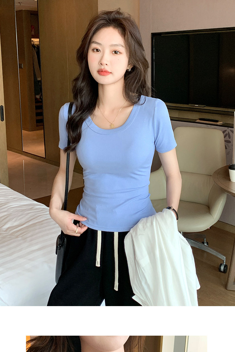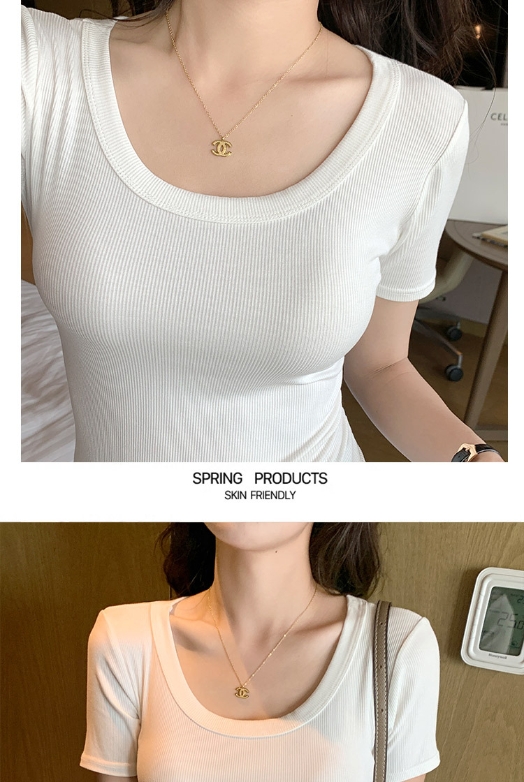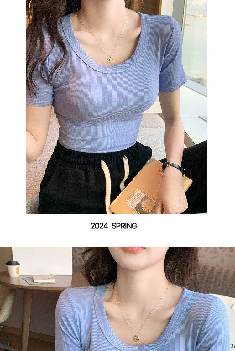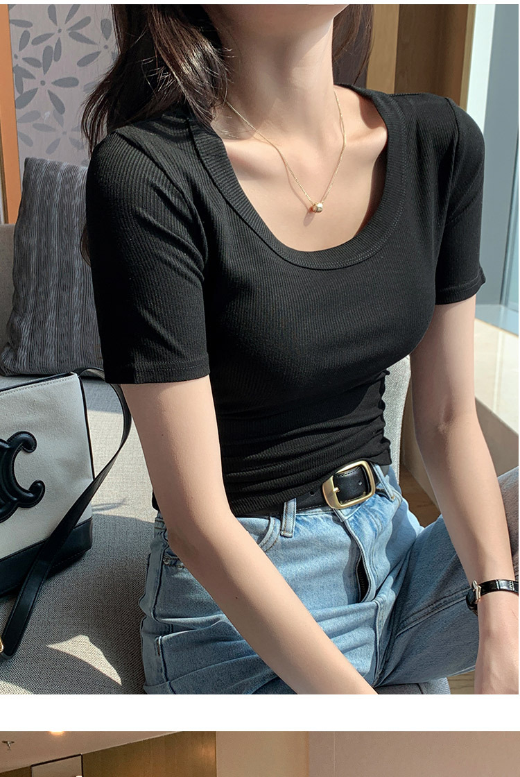 H521 반팔 티셔츠 여성용 봄과 여름 간단한 솔리드 컬러 아우터 올 매치 슬림 핏 편안한 통기성 병아리 탑 트렌디 폭발