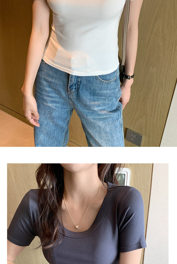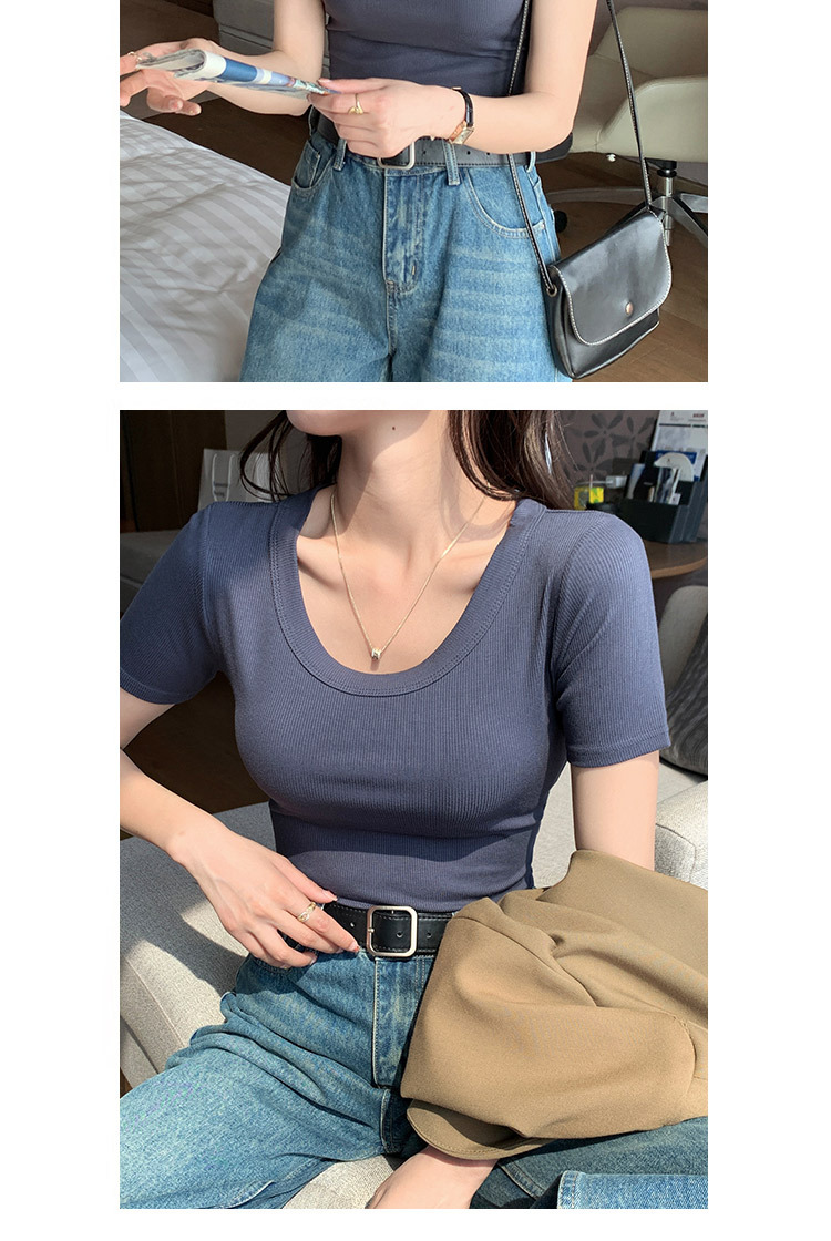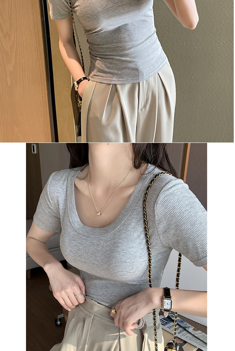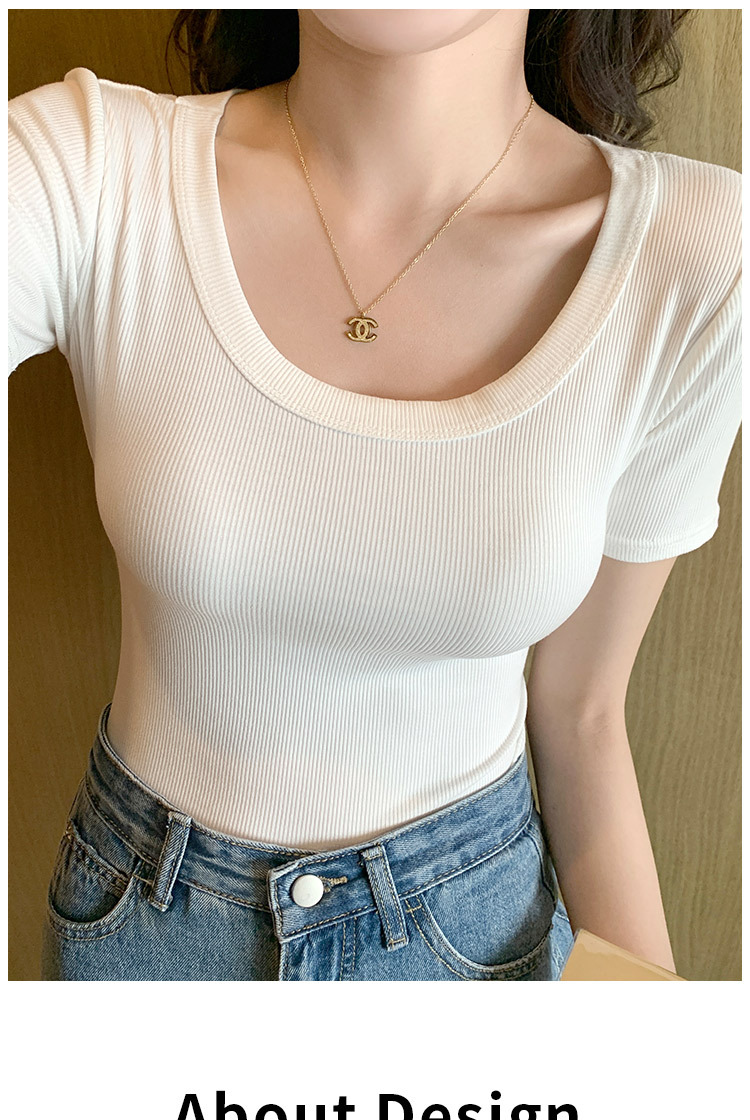 H521 반팔 티셔츠 여성용 봄과 여름 간단한 솔리드 컬러 아우터 올 매치 슬림 핏 편안한 통기성 병아리 탑 트렌디 폭발