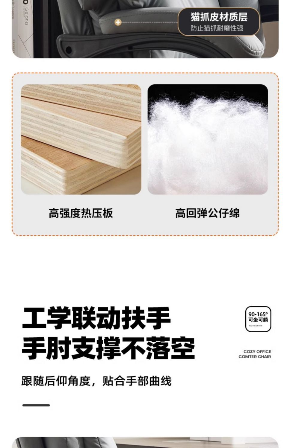 • 102*등받이 각도 조절 가능 168+사무실 브레이크+고양이 긁기 가죽