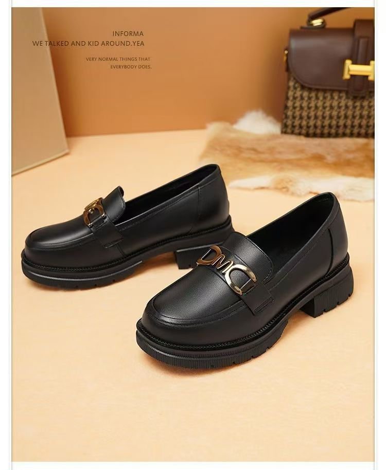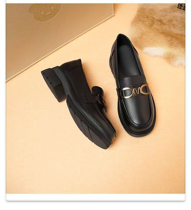 두꺼운 뒤꿈치 두꺼운 영국 가죽 신발 여성의 2025 봄 새로운 로퍼 소프트 가죽 슬립 온 대외 무역 도매 여성 신발스토어 가기