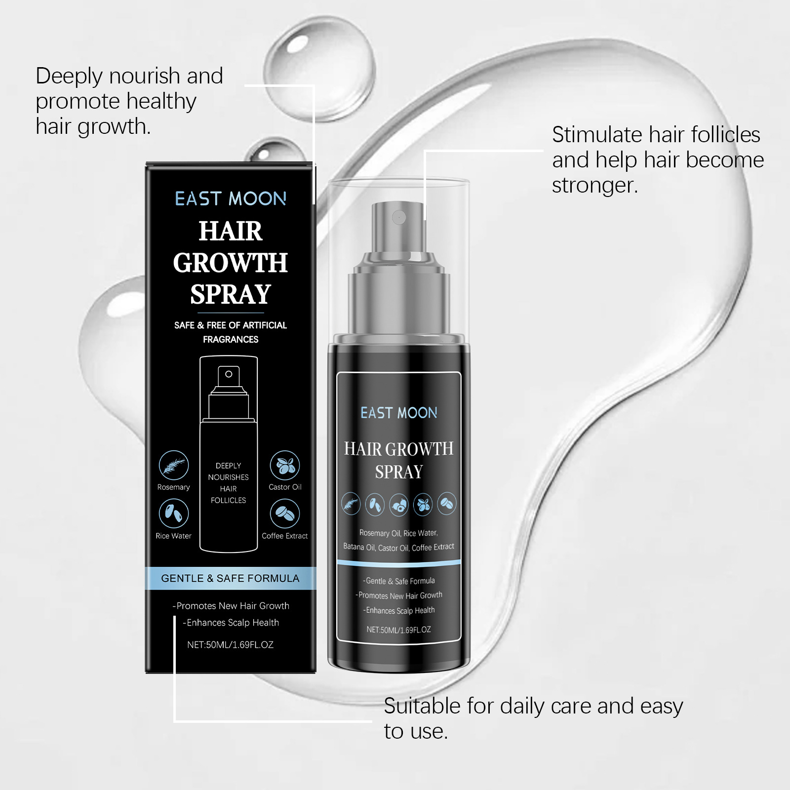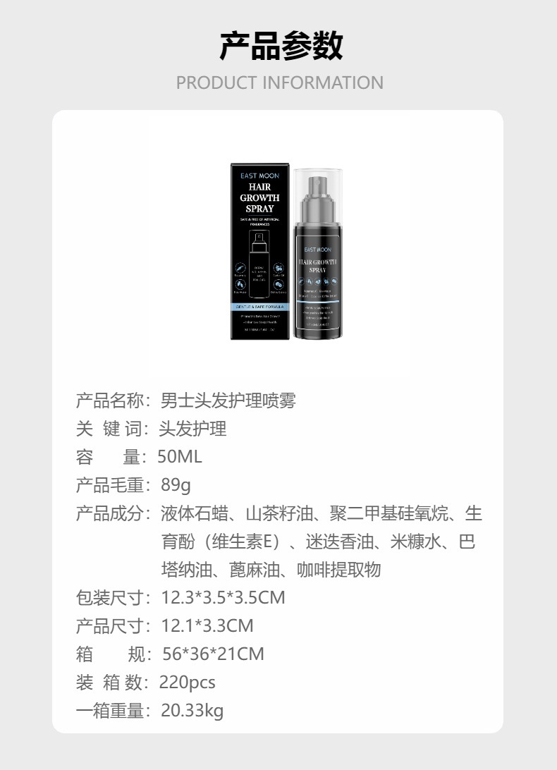 이스트 문 남성 헤어 케어 스프레이 헤어 클리닝 케어 보습 부드러운 광택 헤어 케어 스프레이