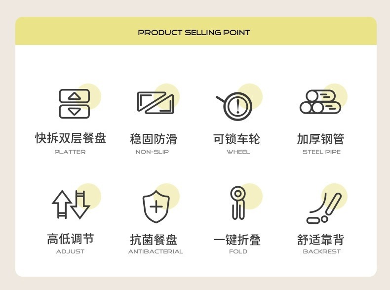 • 크림 옐로우 [브레이크 360 포함]°회전 + PU 소프트 쿠션 + 수납바구니]