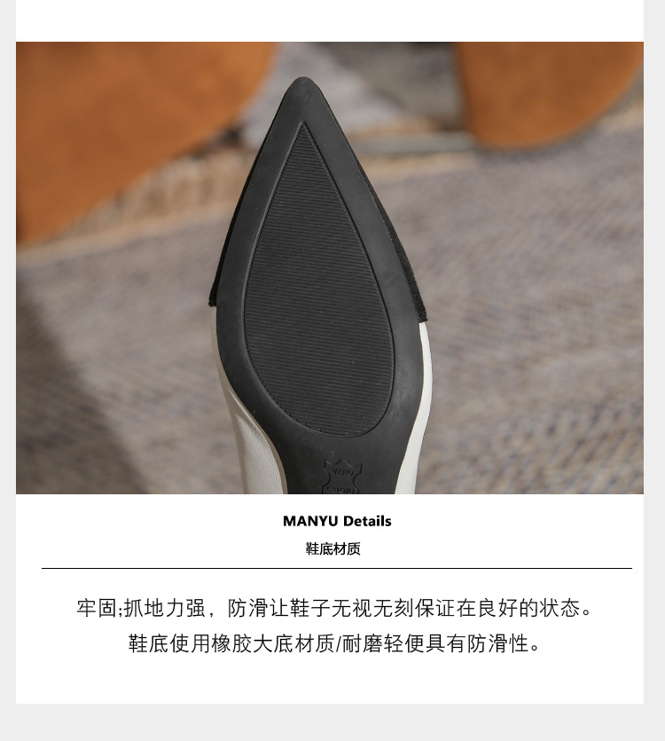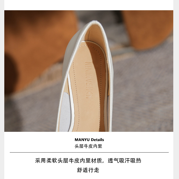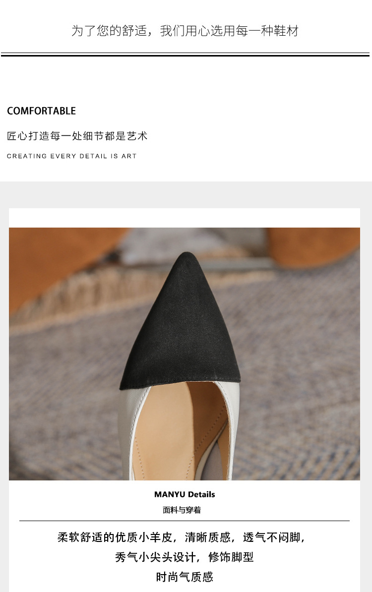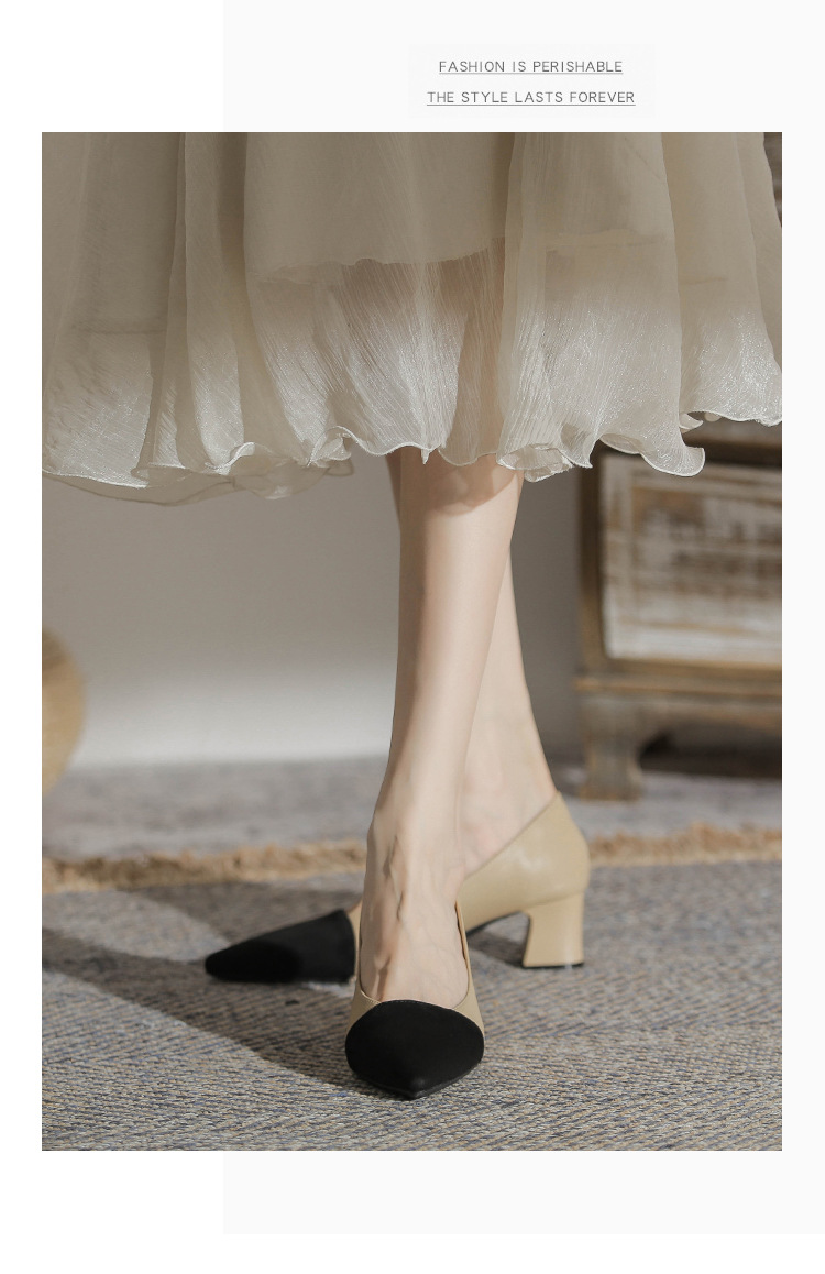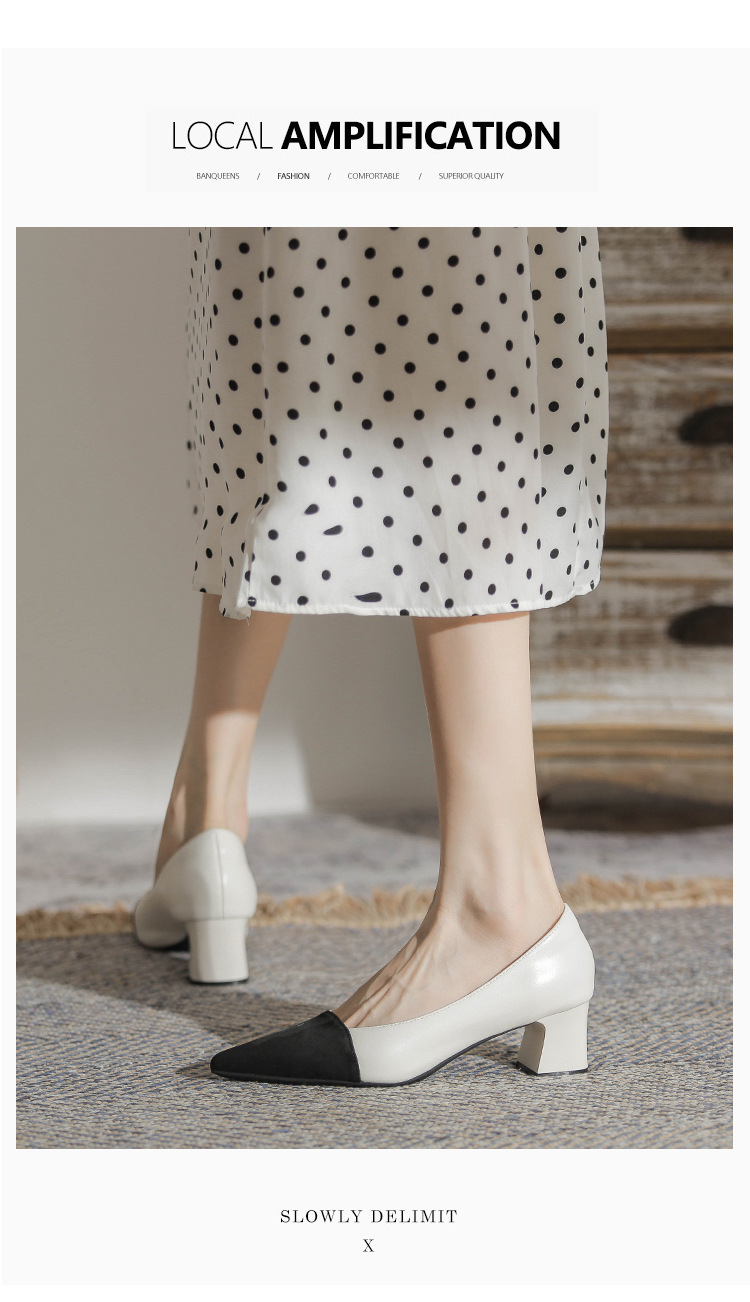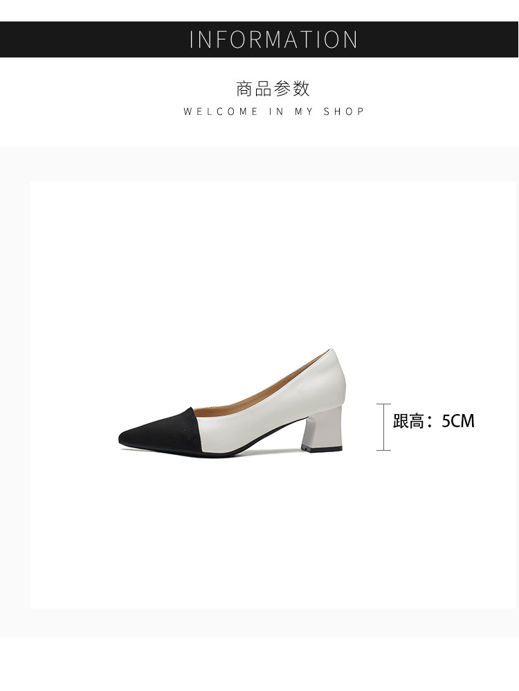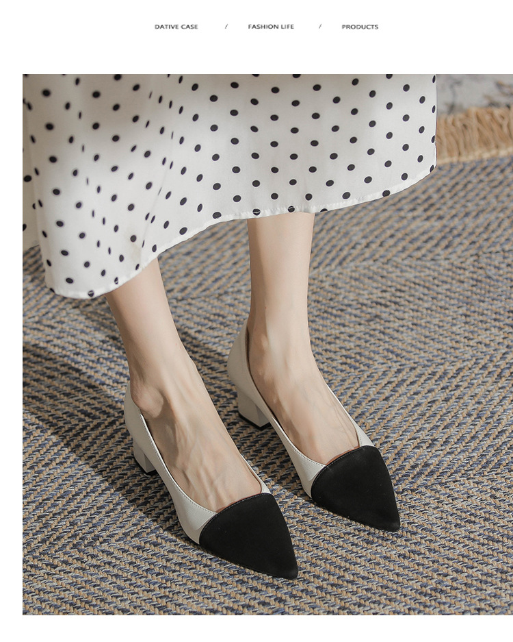 TT969-CG 양가죽 샤넬 스타일 싱글 레이어 신발 여성용 두꺼운 힐 프렌치 컬러 블록 새로운 얕은 입 포인팅 미드 힐 하이힐 신발스토어 가기