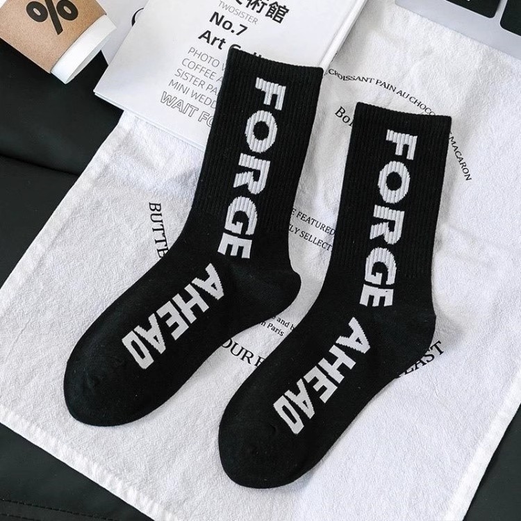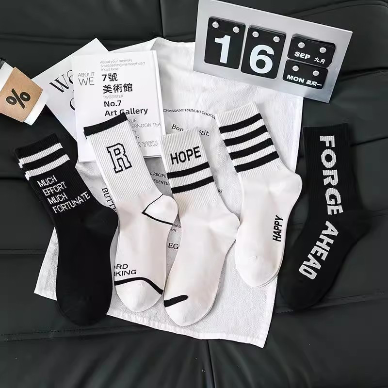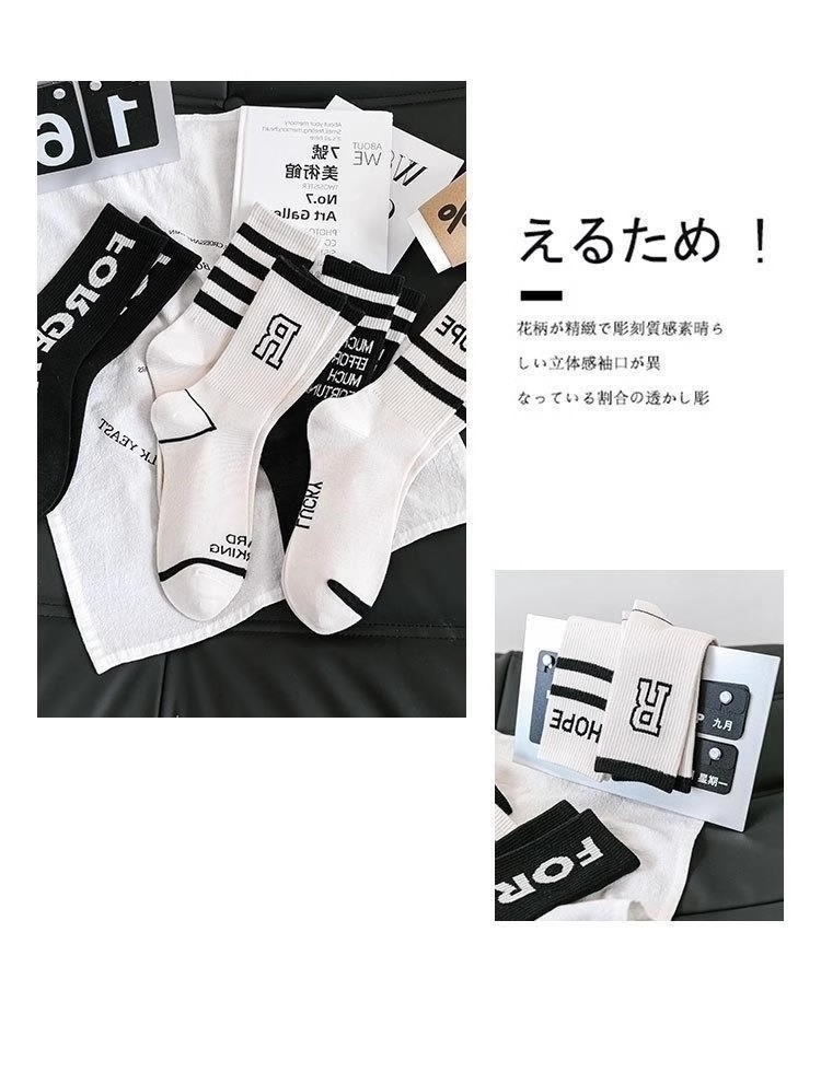 양말 여성용 미드 튜브 양말 봄 및 가을 새 상어 바지 마틴 부츠 편지 인터넷 인기 유행 양말 롱 튜브 양말 올매치